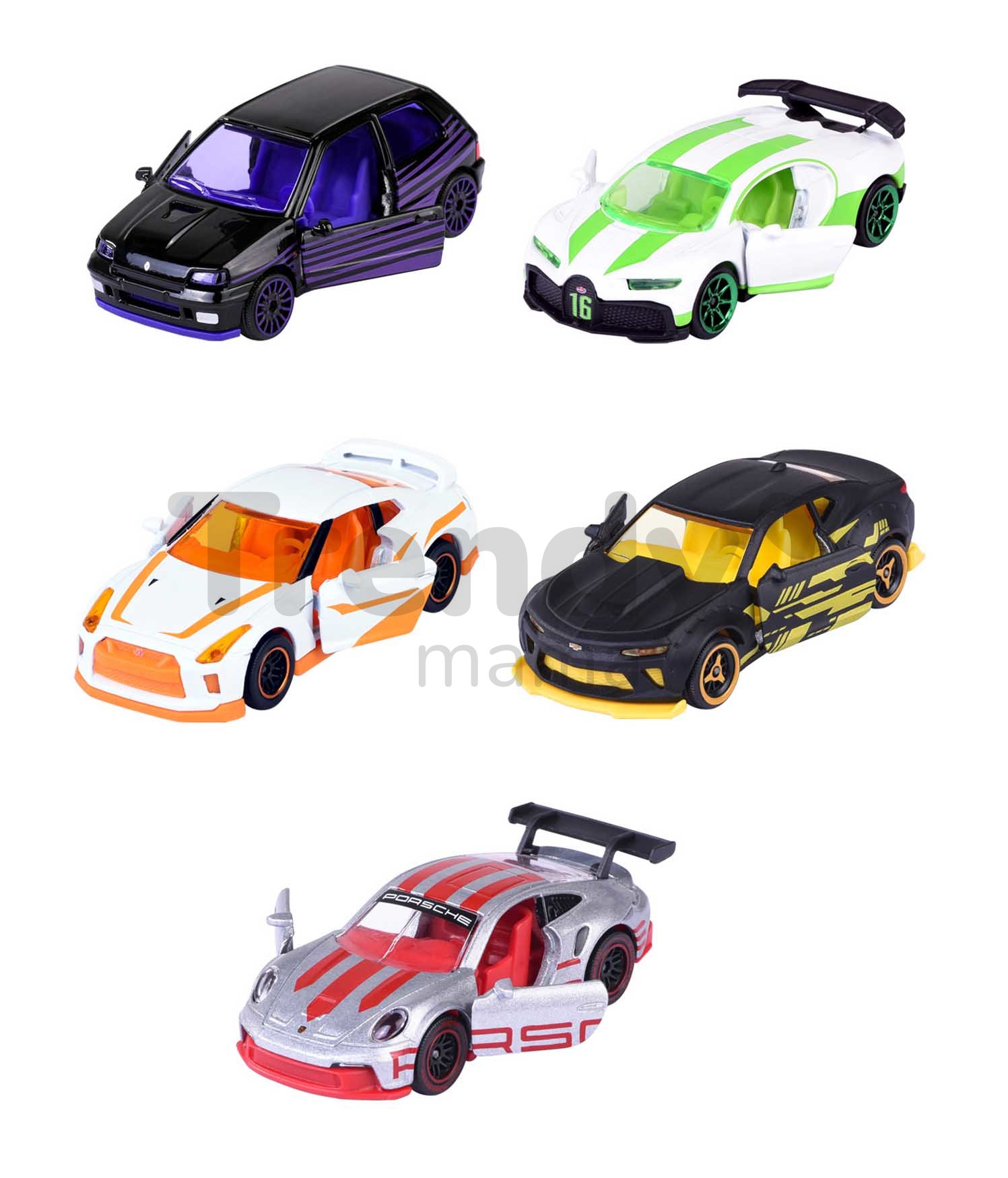Sada autíčok Limited Edition od francúzskej značky Majorette predstavuje skvelý darček pre zberateľov a chlapcov už od 3 rokov. Licencované kovové autíčka s otvárateľnými dverami, kolieskami s odpružením a precízne vypracovanými detailmi boli vyrobené na základe skutočných modelov áut. V originálnom darčekovom balení čakajú na deti tieto krásne modely: Renault Clio 16S, Bugatti Chiron Pur Sport, Chevrolet Camaro, Nissan GT-R, Porsche 911 GT3 Cup. Dĺžka každého autíčka je 7,5 cm.