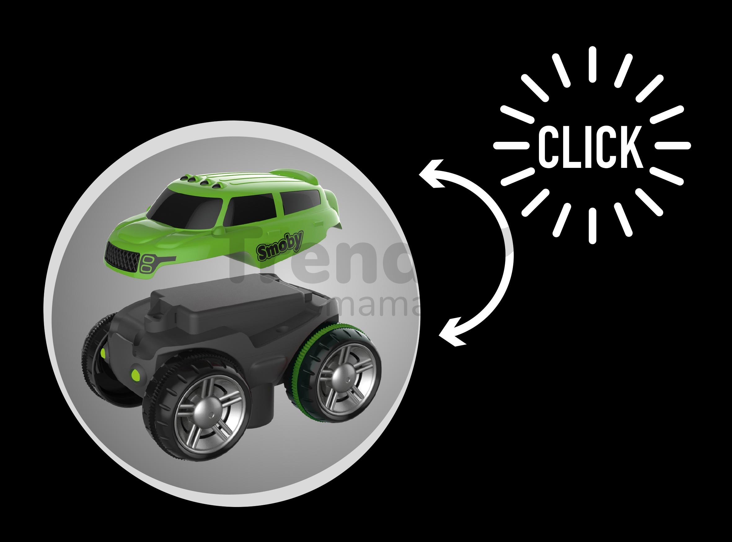 Pripravte svojim deťom prekvapenie v podobe elektronického autíčka SUV, ktoré je perfektným doplnkom k autodráhe FleXtrem Discovery od francúzskeho Smoby. Štýlové zelené autíčko sa vyznačuje originálnym dizajnom. Dokáže sa pohybovať po dráhe aj dole hlavou, pri jazde svieti prednými a zadnými svetlometmi, takže sa s ním deti bez problémov zabavia aj potme. Funguje na 3 batérie typu AAA, ktoré sú súčasťou balenia. Kvalitné autíčko je vyrobené z jemných a zároveň odolných plastov, takže vydrží zabávať deti po dlhé roky. Jeho karoséria je vymeniteľná - ak máte doma podobné autíčko z tejto série, môžete karosériu ľahko vymeniť (náhradná karoséria nie je súčasťou balenia).
