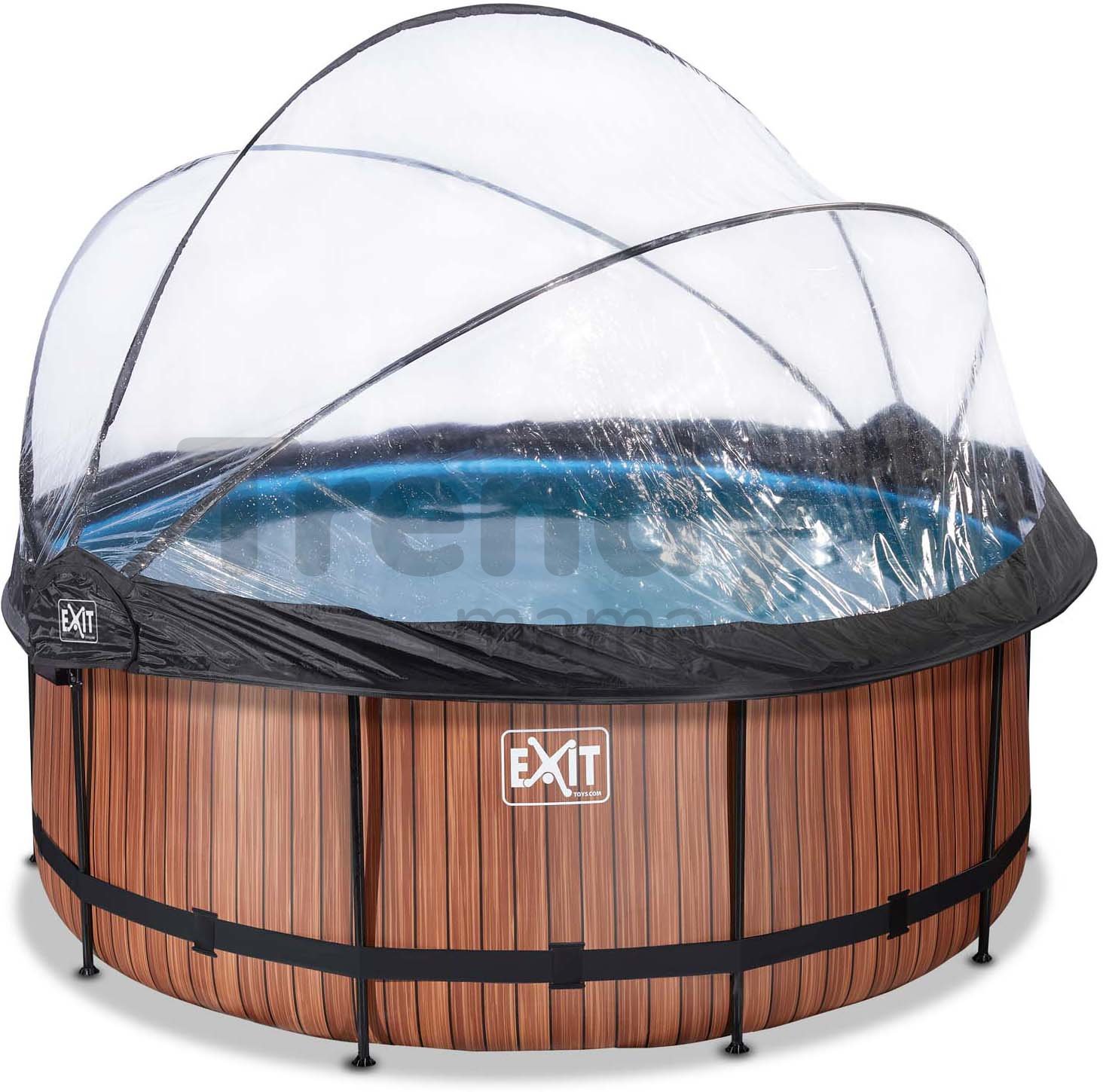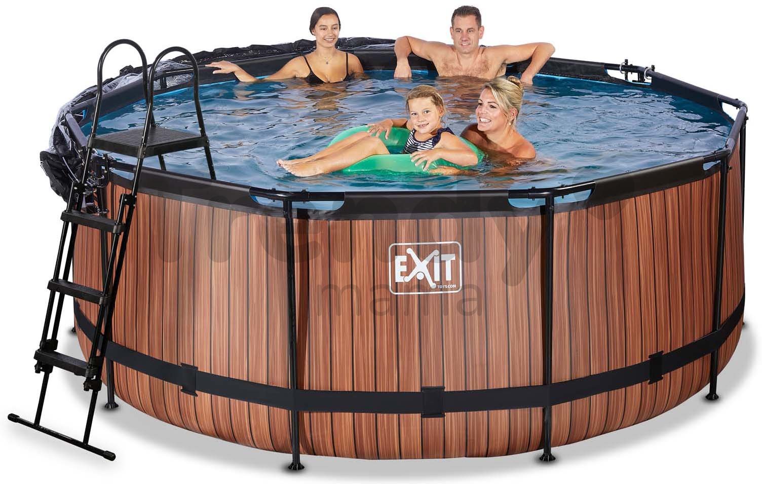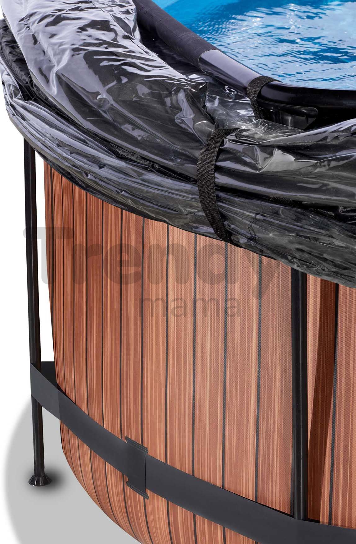 Bazén s filtráciou Wood pool od holandskej značky Exit Toys je kompaktný kruhový bazén s rozmermi 360*122 cm, v ktorom sa okúpu rodičia spolu so svojimi deťmi. Robustný bazén v hnedom vyhotovení so vzorom dreva ozdobí každý dvor a záhradu, je vybavený špičkovou pozinkovanou oceľovou konštrukciou ošetrenou práškovou technológiou, takže vynikajúco odoláva korózii. Bazén je vďaka 10 pevným kovovým nohám veľmi stabilný, stojí pevne na mieste a prístup k nemu umožňuje rebrík s protišmykovými schodíkmi.