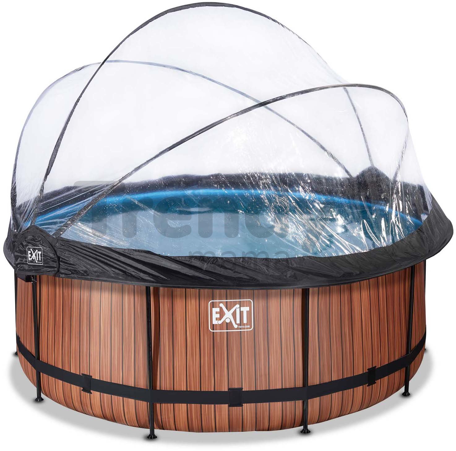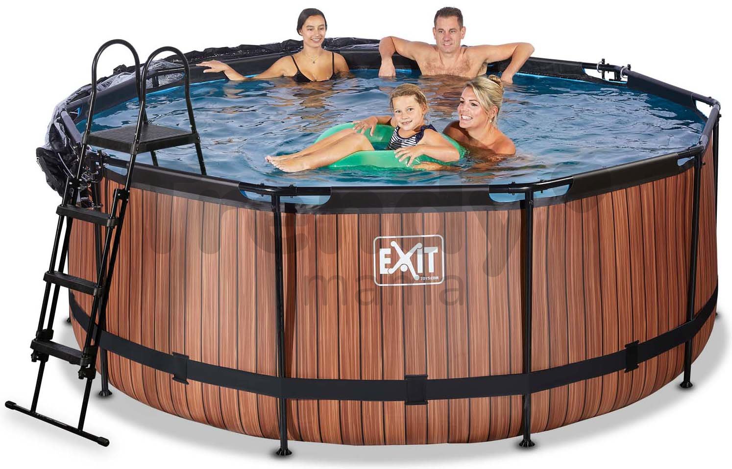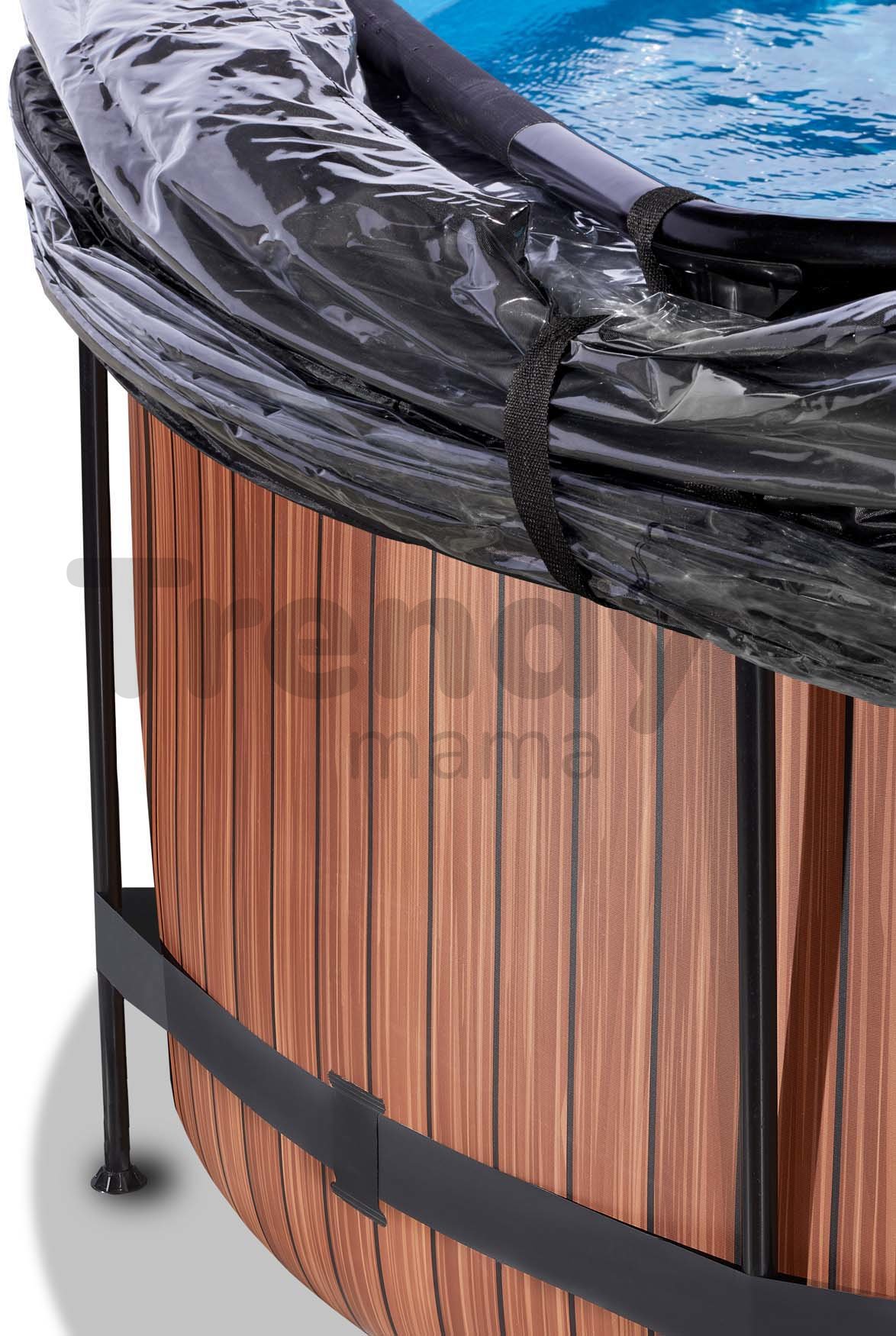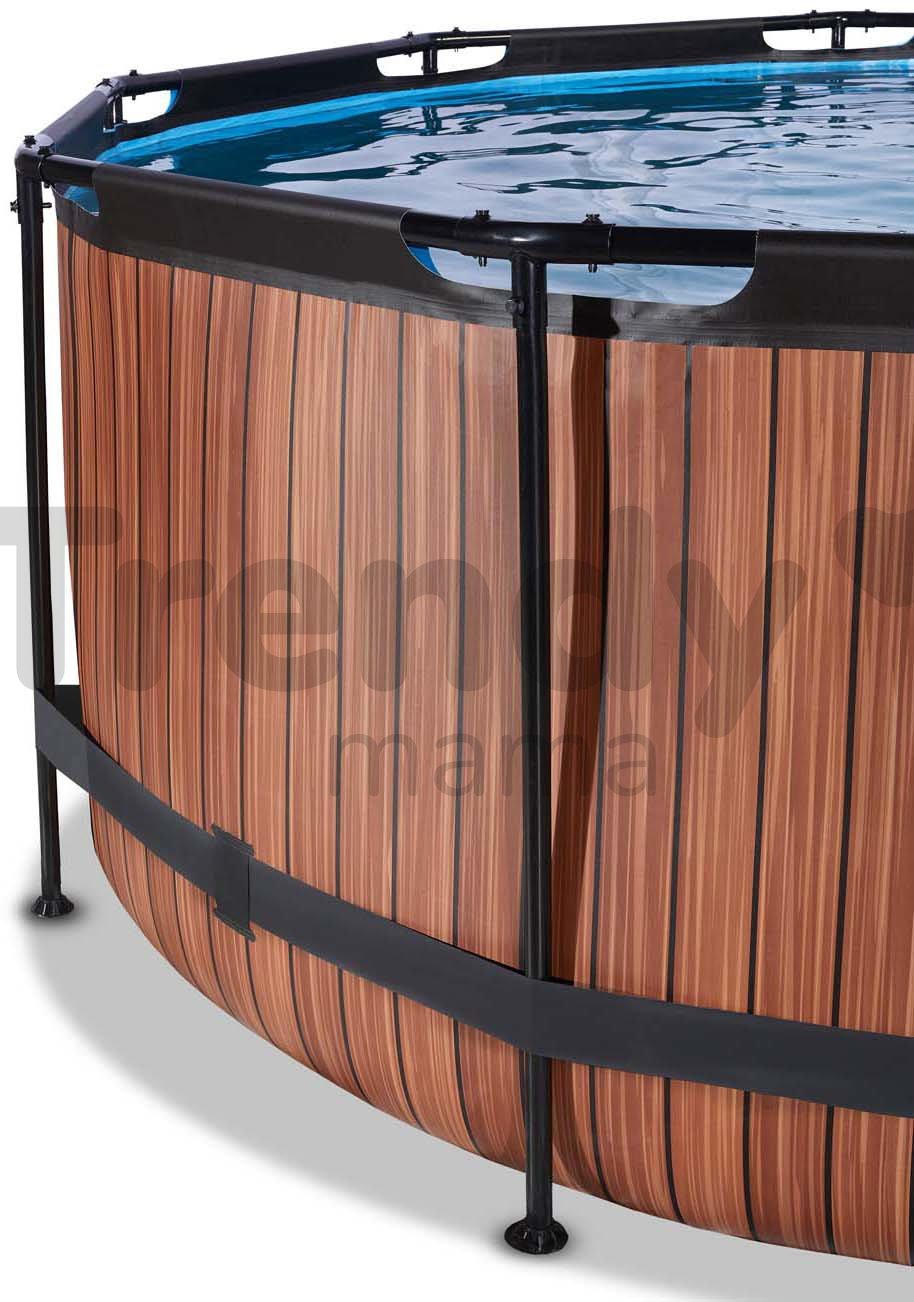 Bazén s filtráciou Wood pool od holandskej značky Exit Toys je kompaktný kruhový bazén s rozmermi 360*122 cm, v ktorom sa okúpu rodičia spolu so svojimi deťmi. Robustný bazén v hnedom vyhotovení so vzorom dreva ozdobí každý dvor a záhradu, je vybavený špičkovou pozinkovanou oceľovou konštrukciou ošetrenou práškovou technológiou, takže vynikajúco odoláva korózii. Bazén je vďaka 10 pevným kovovým nohám veľmi stabilný, stojí pevne na mieste a prístup k nemu umožňuje rebrík s protišmykovými schodíkmi.