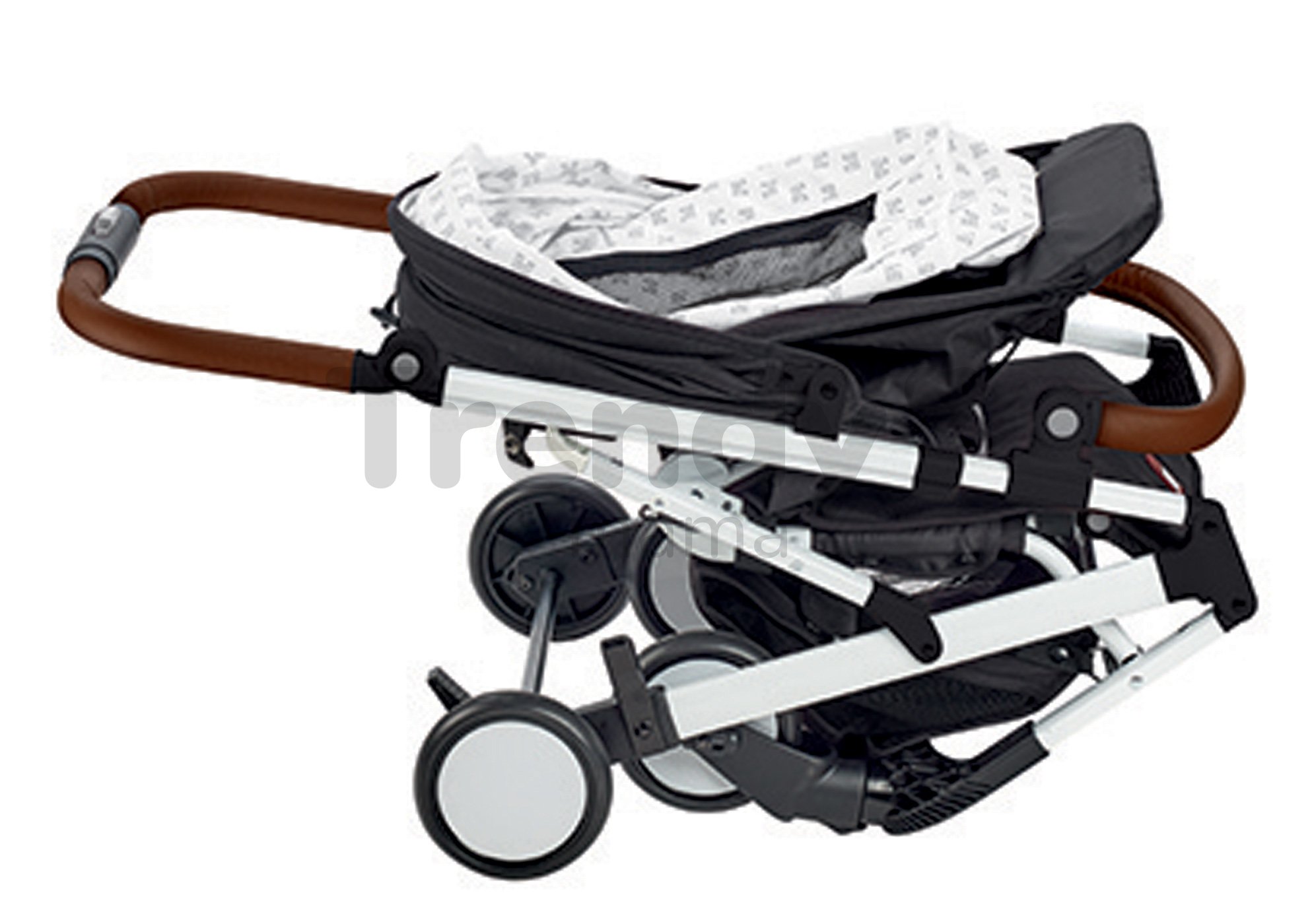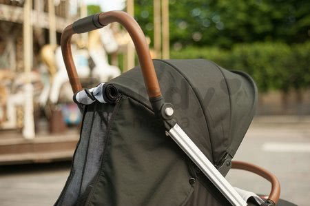 Scaunul confortabil cu tapițerie asigură copilului confortul în timpul plimbării și poate fi, de asemenea, poziționat în poziția culcat când copilașul vrea să doarmă. Centura de siguranță în 5 puncte, cu curele căptușite și bară de siguranță, asigură o siguranță maximă pentru copilașul dvs. Parasolarul practic al căruciorului, va proteja copilul de condițiile meteorologice nefavorabile, iar în partea din spate a parasolarului, are un sistem de aerisire. Mânerul de ghidare este reglabil în 2 poziții de înălțime, oferă o manevrare simplă, este plăcut și moale la atingere - partea superioară este realizată din piele maro 100%, precum și bara de protecție. În partea de jos a căruciorului există un spațiu de depozitare spațios, în care părinții își pot pune cumpărăturile. Roțile EVA pot fi rotite până la 360° grade, pot fi reglate într-o poziție fixă și sunt realizate dintr-un material special, care combină avantajele roților silențioase, din cauciuc și din material de plastic rezistent, astfel că oferă cea mai bună manevrabilitate.