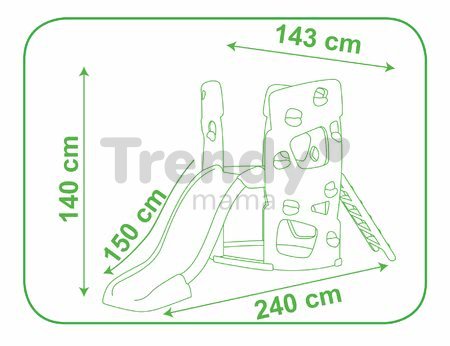 Pe fiecare parte din cele trei pereţi, se află diferite oportunităţi de urcat pe căţărătoare. Cei doi pereţi verzi şi unul gri, sunt dotate cu mânere practice, care asigură menţinerea sigură a copiilor. Peretele căţărătoarei este un mod excelent pentru pregătirea copiilor pentru pereţii mai mari de căţărat. Această cățărătoare splendidă şi practică de jucărie, va oferi oportunităţi numeroase de exerciţii fizice şi de amuzament, precum și două dezchizături prin care cei mici pot trece. Sunt diferite moduri în care copii dvs. se pot juca cu această cățărătoare. Pe lângă datul pe tobogan, la acesta poate fi conetat la apă, transforând joaca într-o distracție pe cinste.