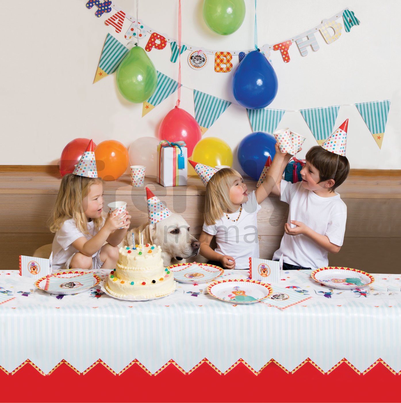 Detská narodeninová sada Circus Happy Janod so zvieratkami prekvapí každého malého oslávenca vo veku od 3 do 8 rokov. Praktické balenie v podobe narodeninovej torty v sebe ukrýva 61 doplnkov, ktoré nesmú chýbať na žiadnej detskej narodeninovej oslave. Veselé zvieratká a pestré farby zdobia papierové taniere, poháre, čiapky pre hostí, pozvánky, balóniky či obrus. Chýbať nesmú ani farebné sviečky na tortu a veľký nápis “Happy Birthday”. Táto praktická sada so zvieratkami od francúzskej spoločnosti Janod uľahčí organizovanie oslavy všetkým rodičom a malým oslávencom vyčarí úsmev na tvári. Hračky pre deti Janod spĺňajú všetky prísne štandardy a predpisy, preto si môžete byť istí, že deti sa hrajú a zabávajú v úplne bezpečnej atmosfére.