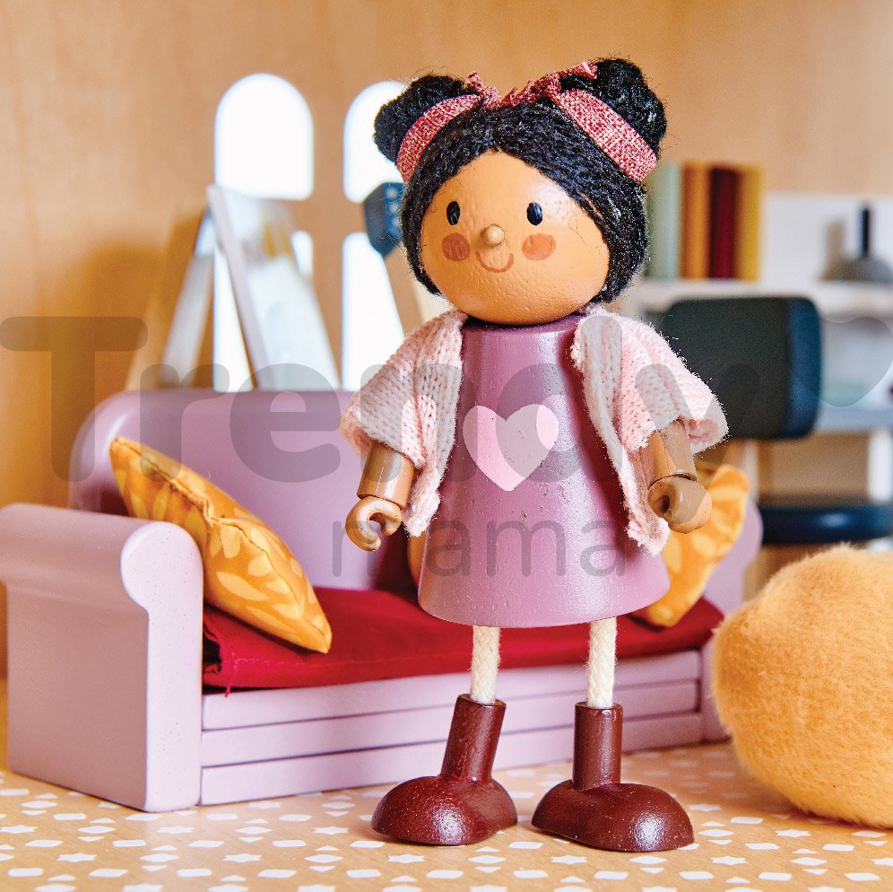 Drevené dievčatko s mačičkou je krásnym darčekom pre všetky dievčatá už od 3 rokov. Moderná figúrka z dreva znázorňuje dievčatko Ayana, oblečené v ružovom pletenom svetríku, spolu s jej obľúbenou mačičkou. Nadčasová figúrka je skvelým doplnkom k dreveným domčekom, deti si vďaka nej rozšíria sadu svojich figúrok, takže si budú môcť vymýšľať nové príbehy a dobrodružstvá. Drevenú figúrku navrhli špičkoví dizajnéri Tender Leaf Toys priamo vo Veľkej Británii a na výrobe sa podieľali zruční remeselníci.