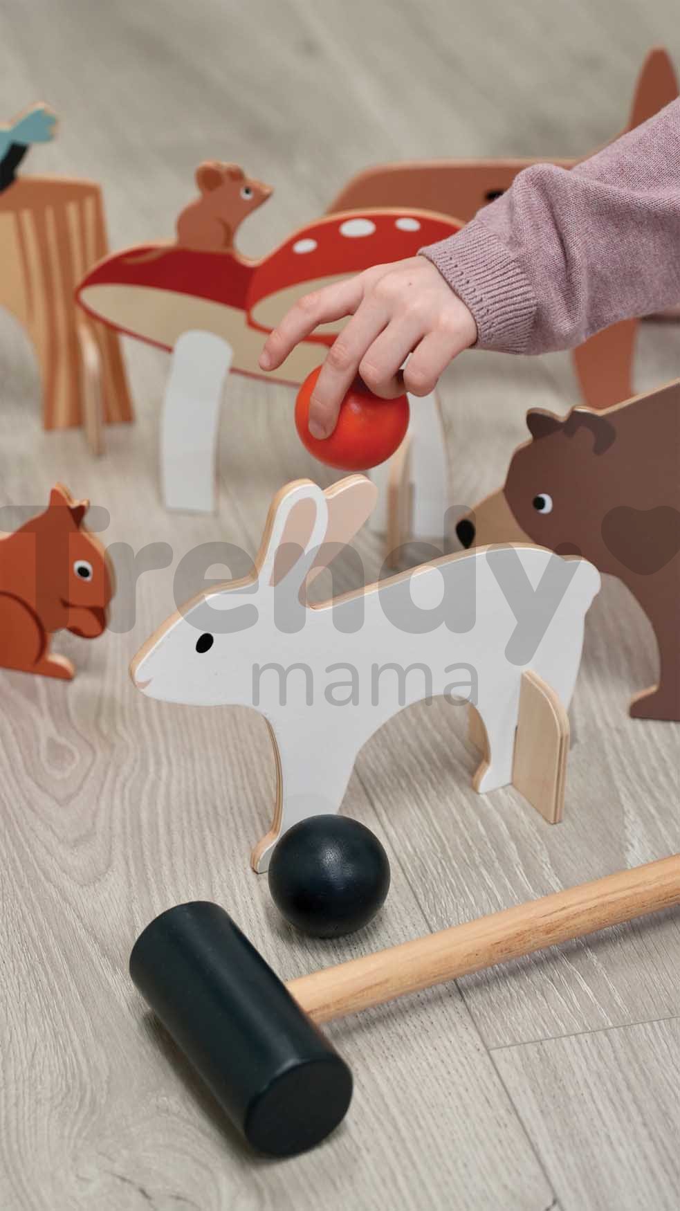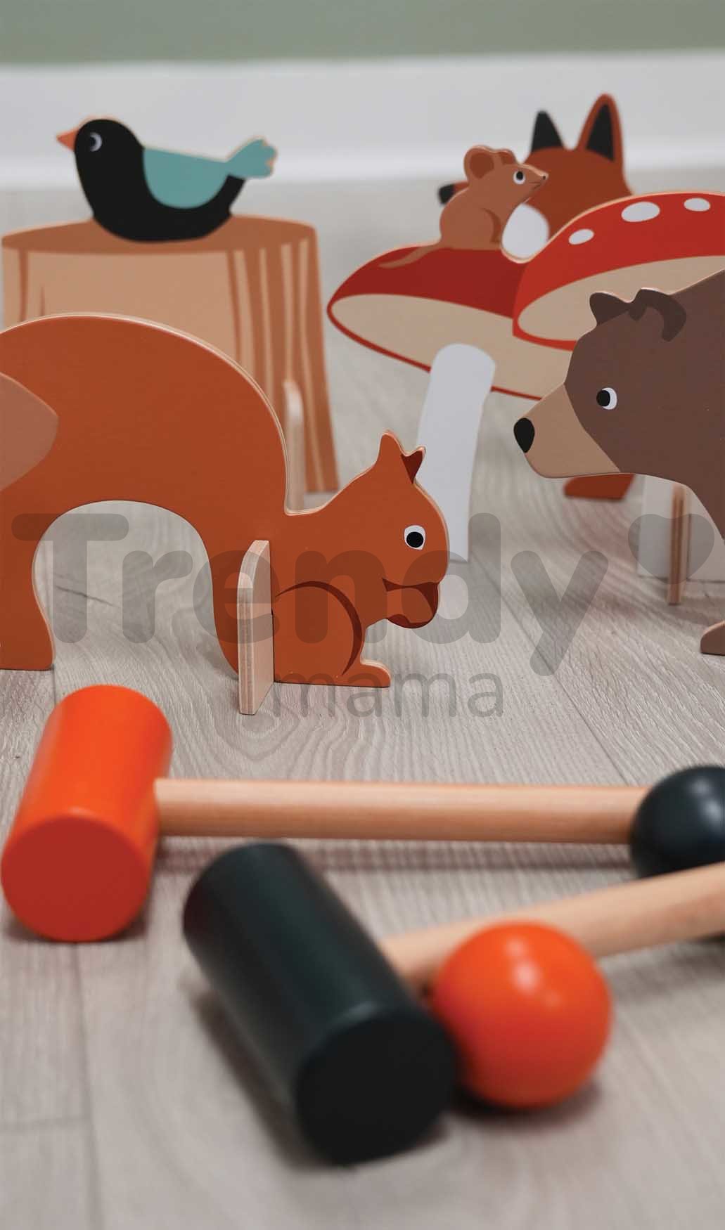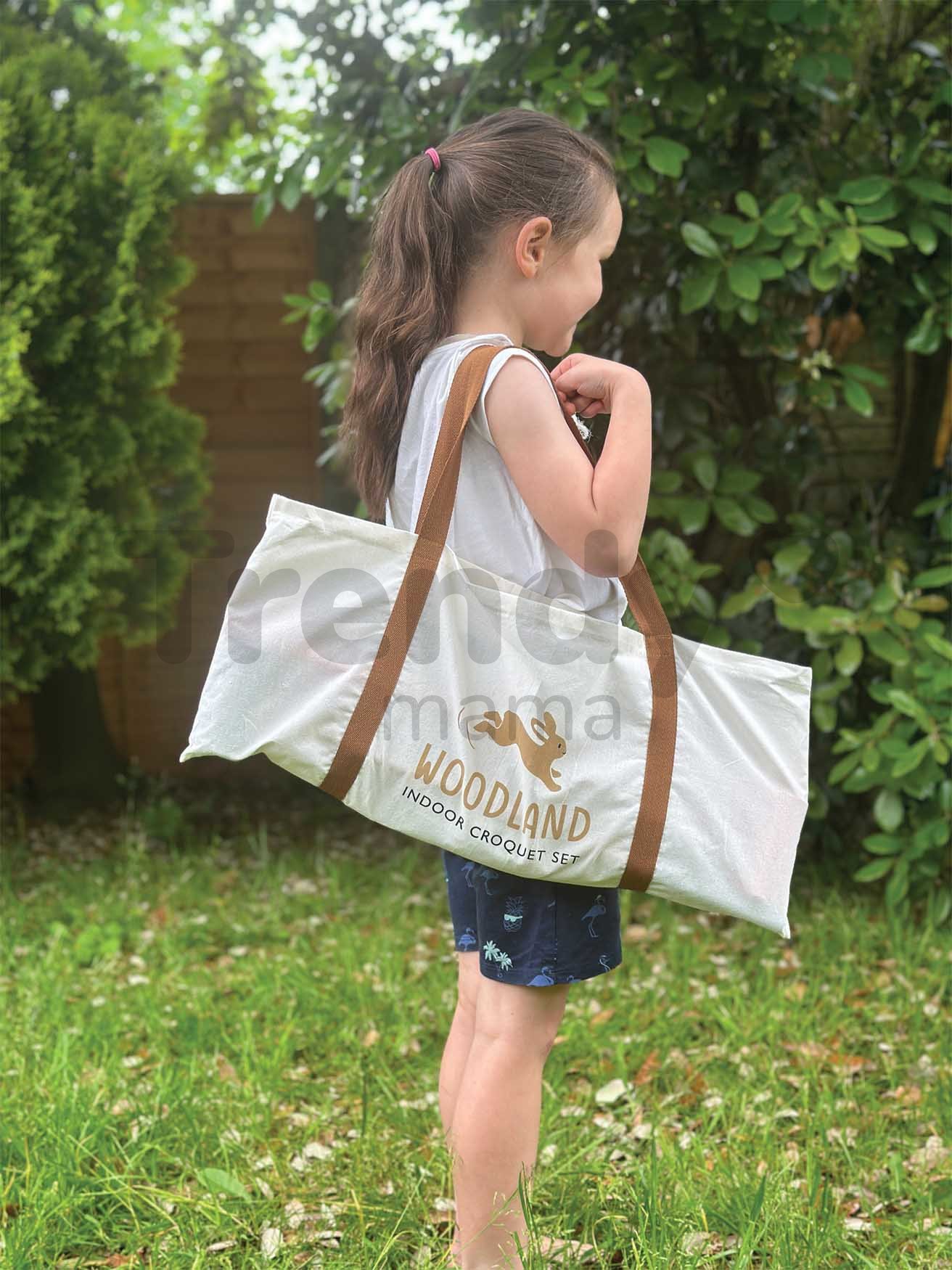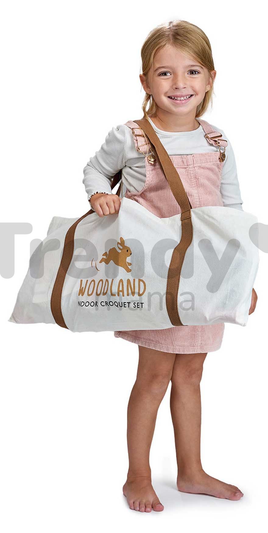 Drevená sada na kroket Woodland Indoor Croquet Set predstavujú skvelý darček pre všetky súťaživé deti od 3 rokov. Tešiť sa môžu na sadu 6 drevených bránok s 2 palicami a 2 loptičkami, ktoré prichádzajú zabalené v štýlovej textilnej taške, vďaka ktorej si ich môžu vziať kamkoľvek so sebou. Drevené bránky v tvare zvieratiek sú označené číslami a ich prírodný vzhľad prinesie deťom ešte väčšiu radosť pri každodennej hre. Športovú sadu navrhli špičkoví dizajnéri značky Tender Leaf Toys priamo vo Veľkej Británii. Je vyrobená z prvotriedneho dreva, vydrží vašim najmenším dlhé roky a poteší aj ďalšie generácie detí.