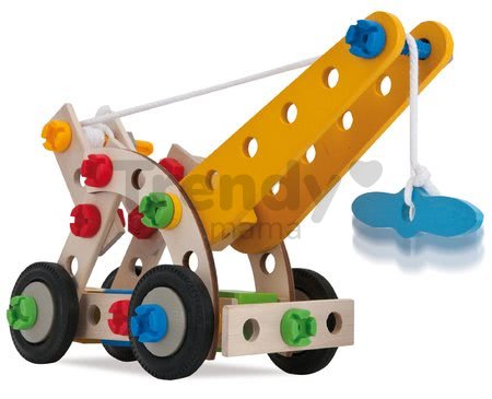 Drevená stavebnica Constructor Mobile Crane od nemeckého výrobcu Eichhorn je nadčasová stavebnica, ktorá je ako stvorená pre všetkých malých konštruktérov už od 3 rokov. Moderná 70-dielna súprava ponúkne deťom možnosť poskladať až 4 modely - žeriav, lietadlo, helikoptéra a bicykel. Hlavné dieliky s precíznymi detailmi sú vyrobené z prvotriedneho bukového dreva, sú prispôsobené pre malé detské rúčky. Chlapci aj dievčatá sa zahrajú na konštruktérov a technikov, pri skladaní si vyskúšajú svoje zručnosti, takisto si rozvíjajú aj logické myslenie a technickú predstavivosť. Multifunkčná stavebnica so 4 variantmi modelov je tou najlepšou zábavou pre deti, ktoré rady objavujú nové herné kombinácie.