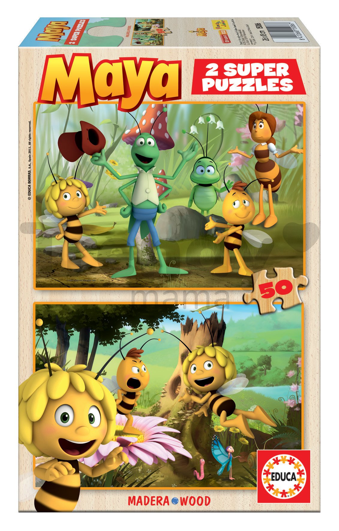 Puzzle-ul din lemn pentru copii, ornat cu motivul Albinuţa Maya, prezintă imagini din povestea despre celebra albinuţă năzdrăvană. Maya, împreună cu familia ei şi cu prietenii lui, trăieşte într-un stup. Ea va avea parte de numeroase aventuri, atât în interiorul, cât şi în exteriorul stupului, dar totuşi toată lumea o iubeşte. Suprafaţa puzzle-ului este ornată cu imaginea frumoasă şi veselă a poveştii. Dimensiunile mai mari ale pieselor de puzzle permit manipularea simplă a acestora. Pachetul de puzzle conţine în total 100 de piese - fiecare imagine conţine 50 de piese, care permit asamblarea a două imagini.