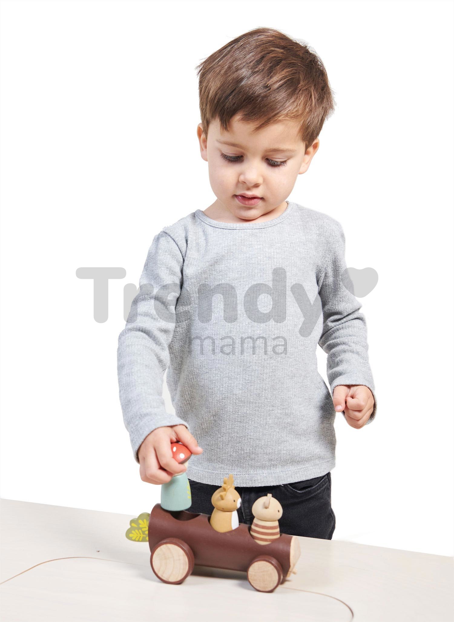 Drevený lesný taxík Timber Taxi predstavuje nádherný darček pre všetky deti od 18 mesiacov. Originálna 4-dielna drevená sada v pravom britskom štýle obsahuje autíčko v tvare kmeňa, v ktorom sú pohodlné usadené 3 figúrky maľovaných postavičiek - Fungi, Robbie a Woody. Najmenšie deti sa s figúrkami výborne zabavia a postarajú sa, aby ich taxík priviezol na miesto určenia. Dizajnový taxík so zvieratkami s motívom Merrywood Tales navrhli špičkoví dizajnéri Tender Leaf Toys priamo vo Veľkej Británii a na výrobe sa podieľali zruční remeselníci.