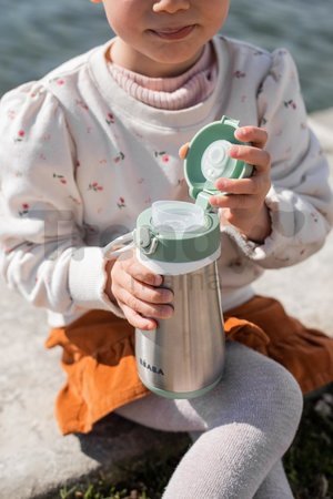 Fľaša Bidon s dvojitými stenami Stainless Steel Bottle z dielne prestížnej značky Beaba sa stane skvelým spoločníkom malých detí, ktoré už vedia samostatne piť. Fľaša pre deti od 18 mesiacov z nehrdzavejúcej ocele je odolná a pevná. Má objem 350 ml a je 100% vodotesná, takže je ako stvorená na použitie nielen doma, ale aj na prechádzkach. Ľahko sa otvára a vďaka príjemnému povrchu ju deti budú bez problémov držať v rukách. Fľaša má tesniace viečko, ktoré zaručí, že tekutina sa nevyleje a deti určite ocenia praktický krúžok na držanie fľaše.