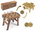 V balení sa nachádzajú aj 2 korkové loptičky, ktoré sú nevyhnutnosťou pri napínavých futbalových zápasoch. Stolný futbal je už dlhé roky obľúbenou zábavou ako aj pre deti, tak aj pre dospelých. Pri hre si chlapci aj dievčatá zábavnou formou precvičujú svoje reflexy, trénujú svoju presnosť a zručnosť pri strieľaní gólov. Stolný futbal je veľmi dobre vyvážený, zabaví nielen deti, no zahrať sa s deťmi môžu aj dospelí. Stôl z prírodného dreva stojí na 4 pevných nohách, jeho povrch je príjemný na dotyk. Rozmery stolíka na hranie sú 97*94*82 cm, pričom jeho celková výška je 82 cm.