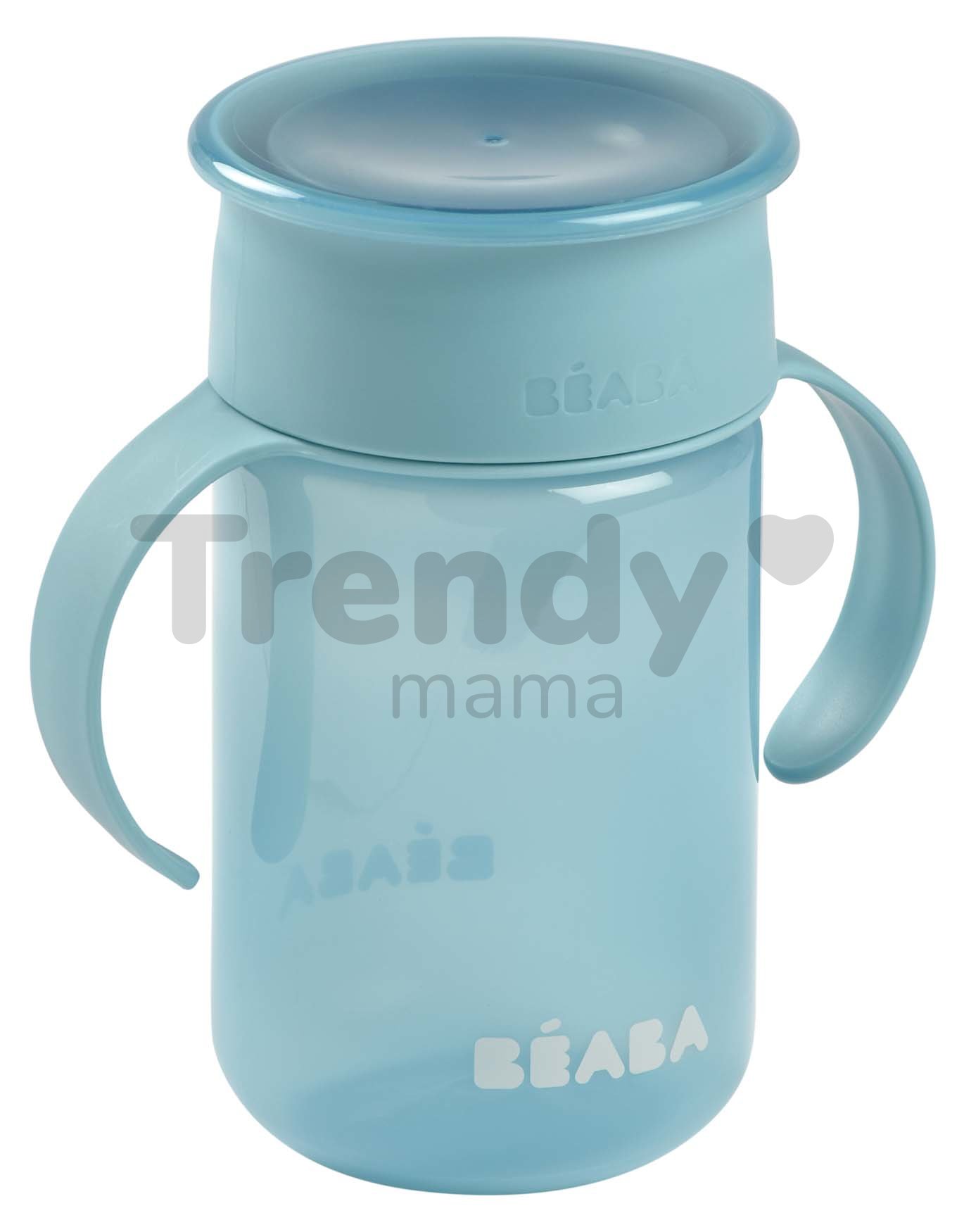 Hrnček pre bábätká 360° Learning Cup od Beaba môžu deti používať už od 12 mesiacov a neskôr ju prispôsobia svojim potrebám. Fľaša na pitie má totiž odnímateľné rúčky. Keď deti nadobudnú počas pitia istotu, môžu z fľaše piť aj bez rúčok. Výhodou fľaše je tesniace viečko, ktoré neprepustí ani kvapku tekutiny, takže fľaša je ideálnym spoločníkom na cestovanie. Fľaša Beaba je vhodná aj do umývačky riadu, ale pre zachovanie kvality ju odporúčame umývať ručne.