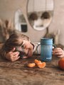 Táto pevná plastová fľaša na nápoje v modrej farbe má dve praktické rúčky pre ľahšie uchopenie a patentovaný 360° systém pitia deťom umožňuje napiť sa z hrnčeka z ktorejkoľvek strany presne ako z pohára pre dospelých. Výhodou je nepochybne dokonalá tesniaca schopnosť, pretože tekutina z hrnčeka tečie iba vtedy, keď deti priložia pery na okraj pohára.