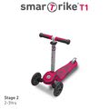 Trotineta smarTrike T1 este un mijloc de transport unicat pentru orice copilaș de la vârsta de 15 luni. Aceasta are un design modern și va funcționa extraordinar pentru copilașul dumneavoastră. Trotineta și babytaxiul, în același timp, se pot folosi în 3 etape, astfel pe parcurs copilașul va face cunoaștință cu trotineta și va învăța mersul pe aceasta. Copii o vor putea folosi ca pe un babytaxiu atunci când au vârsta cuprinsă între 15-24 luni. Înălțimea acesteia se poate regla și se poate demonta pentru un scaun. Cele 2 roți din față și roata din spate a trotinetei garantează stabilitate și siguranță. De la vârsta de 15 luni copilașii vor sta pe trotinetă ca și pe un babytaxiu și își vor da avânt cu picioarele.
