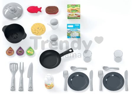 Bohaté príslušenstvo obsahuje až 27 doplnkov. Vo výbave sa nachádzajú aj lyžičky, nožíky, vidličky, tanieriky, poháriky, šálky, rôzne náplne do kávovaru, krabica s cestovinami, mliekom, napichovacia vidlička, nôž na krájanie a praktická naberačka. Všetky detaily kuchynky sú starostlivo prispôsobené detským rúčkam, ktoré si tak pestujú hmatovú citlivosť, koordináciu pohybov a jemné motorické schopnosti. Pri hre si rozvíjajú komunikačné schopnosti, a hrou napodobňujú dospelých. Zároveň si zlepšujú aj koncentráciu a bystrý úsudok, naučia sa, na čo slúžia jednotlivé kuchynské náčinie a doplnky.