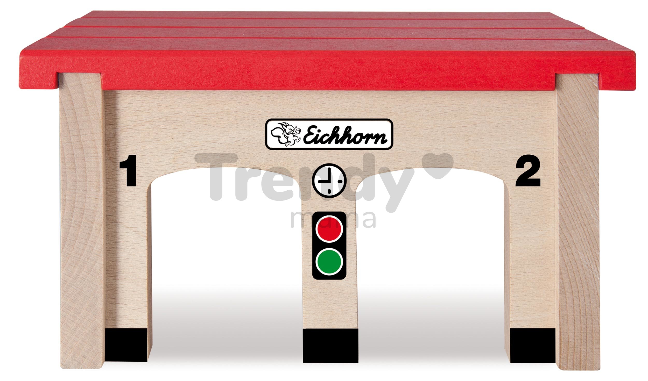Nadčasové doplnky Eichhorn k vláčikodráham za skvelé ceny. Originálne železničné depo s koľajnicami z prvotriedneho bukového dreva poteší deti od 3 rokov.