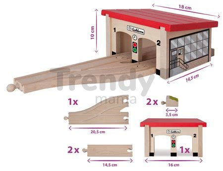 Náhradné diely k vláčikodráhe Train Engine Shed od nemeckého výrobcu Eichhorn v sebe skrývajú vlakové depo, ktoré je ako stvorené pre všetkých malých konštruktérov od 3 rokov. Železničné depo s koľajnicami je vyrobené z prvotriedneho bukového dreva, ktoré je príjemne hladké na dotyk a prináša deťom originálne spojenie s prírodou. Štýlové depo je vyhotovené v jemných a zároveň sýtych farbách, ktoré očaria každé dieťa. 7-dielna súprava obsahuje depo, 2 rovné koľajnice, 1 rozbočovaciu koľajnicu a 2 nárazníky, takže sa deti vynikajúco zabavia pri hre na povolanie rušňovodičov a mechanikov. S týmito doplnkami si deti rozvíjajú predstavivosť, logické myslenie a zároveň získavajú pocit zodpovednosti. Celková dĺžka súpravy je 35 cm.
