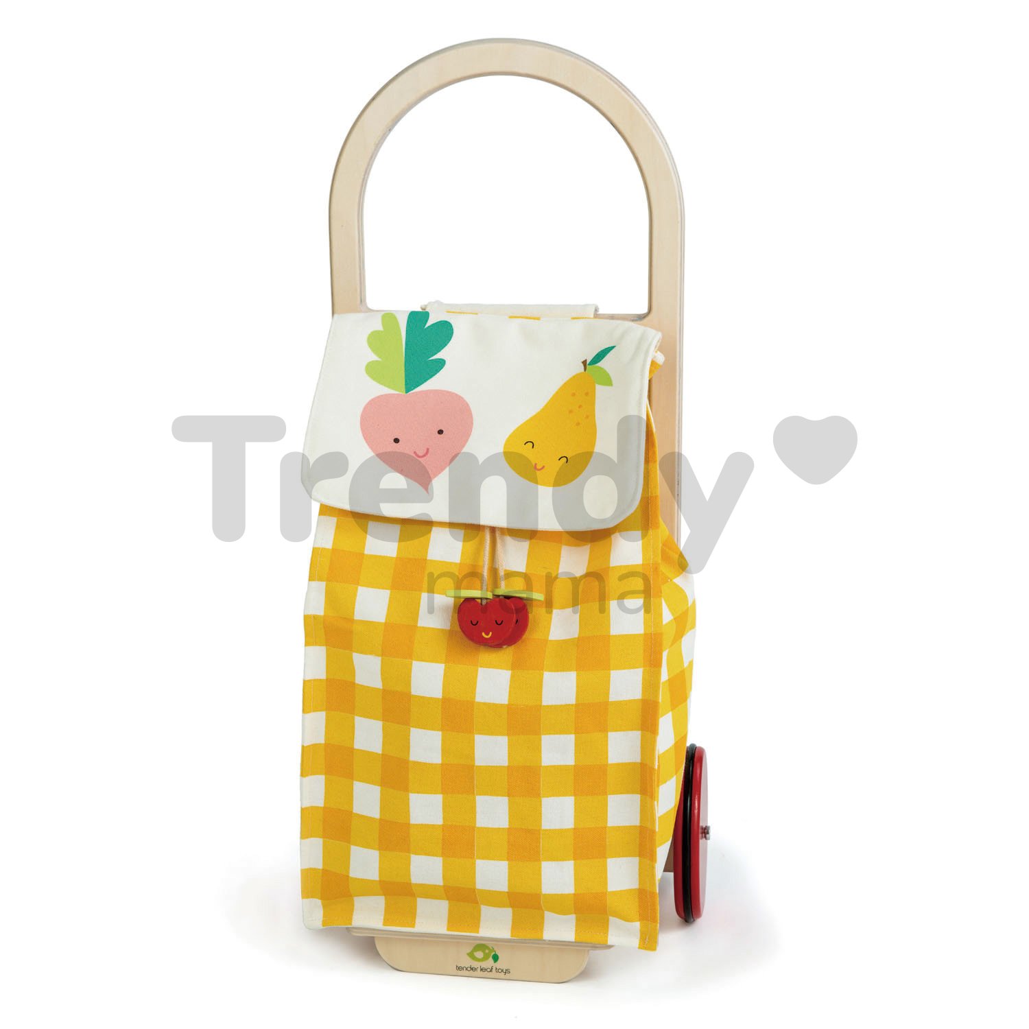Nákupný vozík z textilu Shopping Trolley je nadčasová hračka pre všetky deti už od 3 rokov. Trendový nákupný vozík navrhli špičkoví dizajnéri značky Tender Leaf Toys priamo vo Veľkej Británii. Pozostáva z veľkej žltej nákupnej tašky z prvotriedneho textilu, ozdobenej umeleckými obrázkami ovocia a zeleniny, a pevnej, odolnej drevenej konštrukcie s veľkými červenými kolieskami, vďaka ktorým si chlapci aj dievčatá svoj tovar bez problémov odvezú.