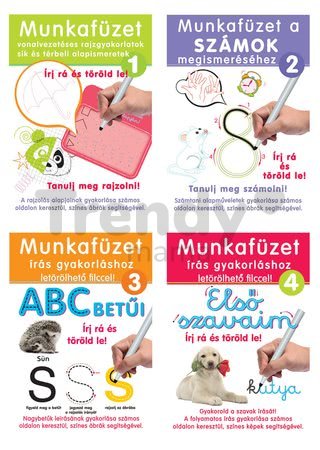 S náučnou hrou na precvičovanie kreslenia rôznych písmenok sa dieťa hravo a jednoducho učí správne písať písmenká, pričom si zlepšuje jemnú motoriku, rozvíja fantáziu a predstavivosť. K dispozícii má zošit s rôznymi písmenkami, ktoré sa snaží obkreslovať. Celú náučnú hru si dieťa môže precvičovať neustále vďaka zmazateľnému peru a špongii. Navyše praktický zošit bude mať vždy po ruke a môže sa učiť a zabávať napríklad cestou autom. Rozmery zošita sú 30*21*1 cm.