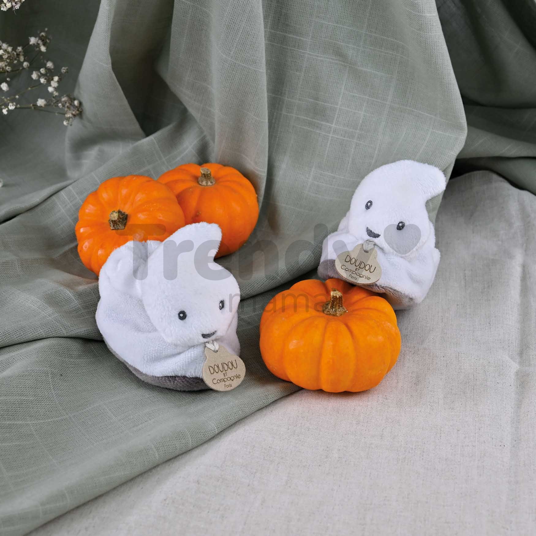 Očarujúce papučky s halloweenskym dizajnom My First Halloween Doudou et Compagnie vo veľkosti 0-6 mesiacov s jemnou hrkálkou si jednoducho zamilujete. Papučky vyrobené z jemného, mäkkého materiálu pochádzajúce z dielne francúzskej značky Doudou et Compagnie k vám dorazia v dizajnovom darčekovom balení a predstavujú ideálny darček k narodeniu bábätka. Môžete ich prať v práčke pri 30 °C na jemnom cykle, čo im opäť prinavráti eleganciu. Biele papučky pre bábätko s duchom spĺňajú najprísnejšie bezpečnostné kritériá a sú testované nezávislými, schválenými laboratóriami.