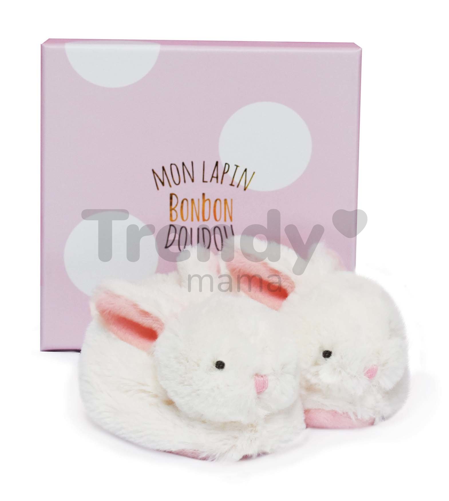 Očarujúce papučky Lapin Bonbon Doudou et Compagnie vo veľkosti 0-6 mesiacov s jemnou hrkálkou si jednoducho zamilujete. Papučky vyrobené z jemného, mäkkého materiálu pochádzajúce z dielne francúzskej značky Doudou et Compagnie k vám dorazia v dizajnovom darčekovom balení a predstavujú ideálny darček k narodeniu bábätka. Môžete ich prať v práčke pri 30 °C na jemnom cykle, čo im opäť prinavráti eleganciu. Ružové papučky pre bábätko Lapin Bonbon spĺňajú najprísnejšie bezpečnostné kritériá a sú testovaná nezávislými, schválenými laboratóriami.