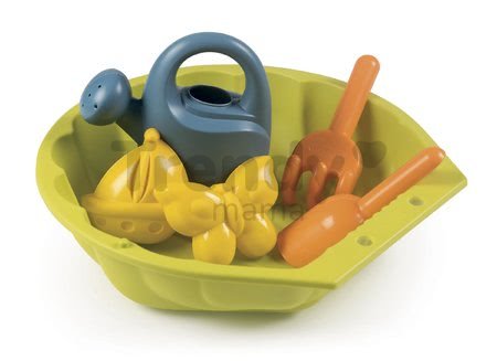 Spolu s pieskoviskom získajú vaše deti aj 5-dielnu sadu náradia s ktorým bude práca s pieskom oveľa jednoduchšia. Tešiť sa môžu na kvalitnú krhličku na polievanie, žlté formičky v tvare lodičky a motýľa, oranžové hrabličky a lopatku. Všetky doplnky sú prispôsobené pre malé detské rúčky, umožňujú bezproblémovú manipuláciu. Multifunkčné pieskovisko sa však dá počas horúcich letných dní využiť aj ako bazénik - napustí sa vodou a deti sa zahrajú na osviežujúcu hru s lodičkami (nie sú súčasťou balenia).