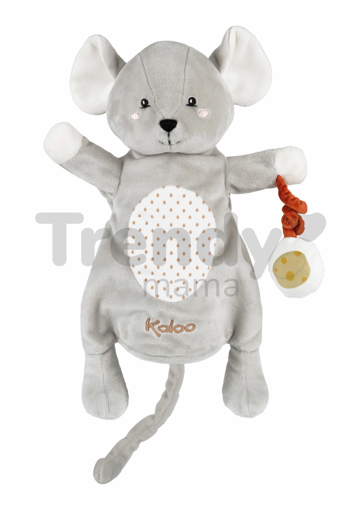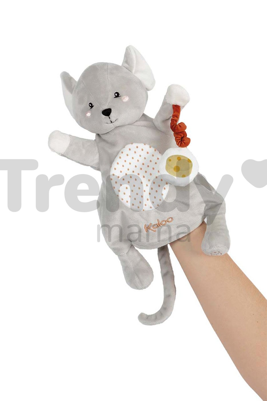 Plyšová myška Lili Mouse z obľúbenej edície Kachoo od francúzskej spoločnosti Kaloo vám pomôže výborne výborne zabaviť všetky malé bábätká už od narodenia. Nadčasová rukavica v tvare myšky s príveskom má veľkosť 30 cm, takže môžete svojmu bábätku kedykoľvek zahrať veselé scénky s myškou, ktorá sa kŕmi chutným syrom. Veselá šedá myška pôsobí realisticky a je vyhotovená z prvotriedneho plyšu, ktorý je hebký a jemný k detskej pokožke. Rukavica je vhodná pre ruky dospelých.