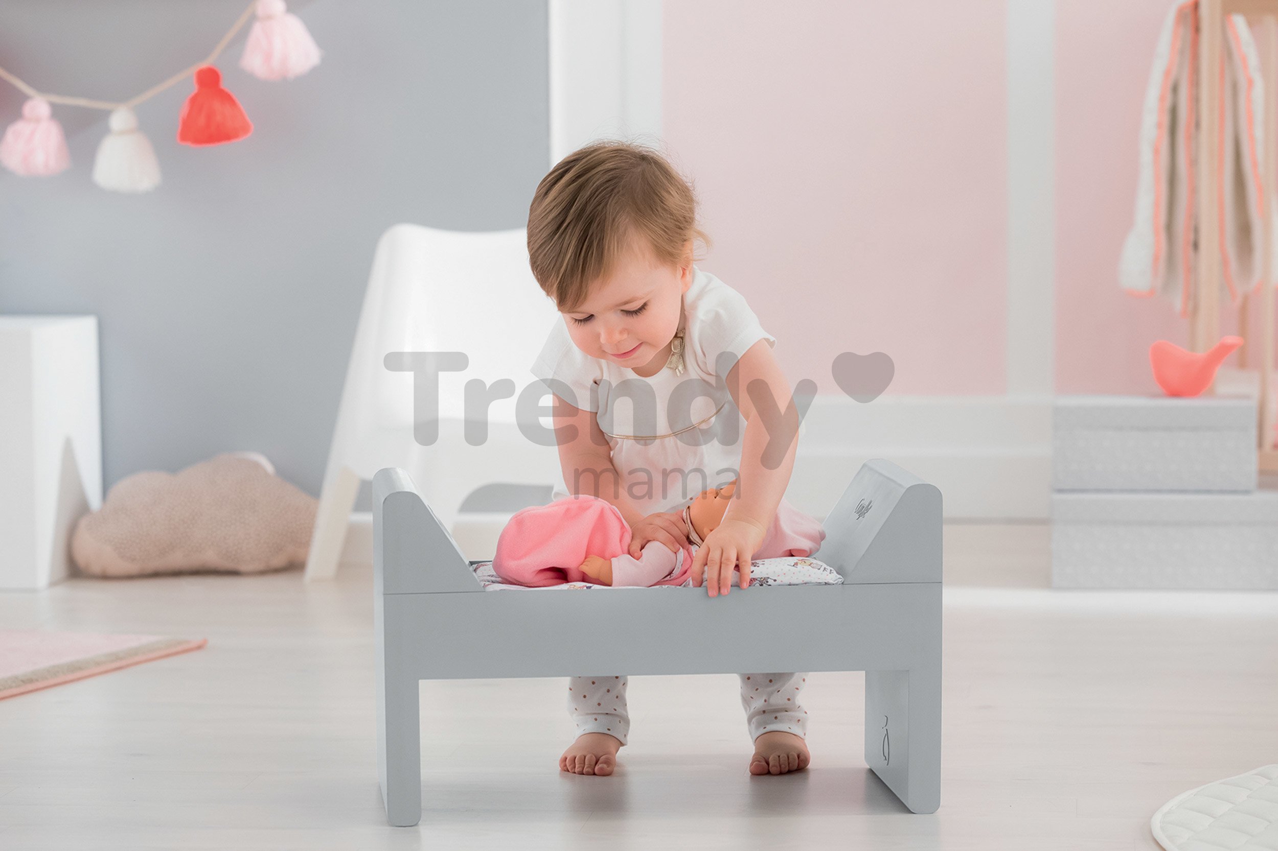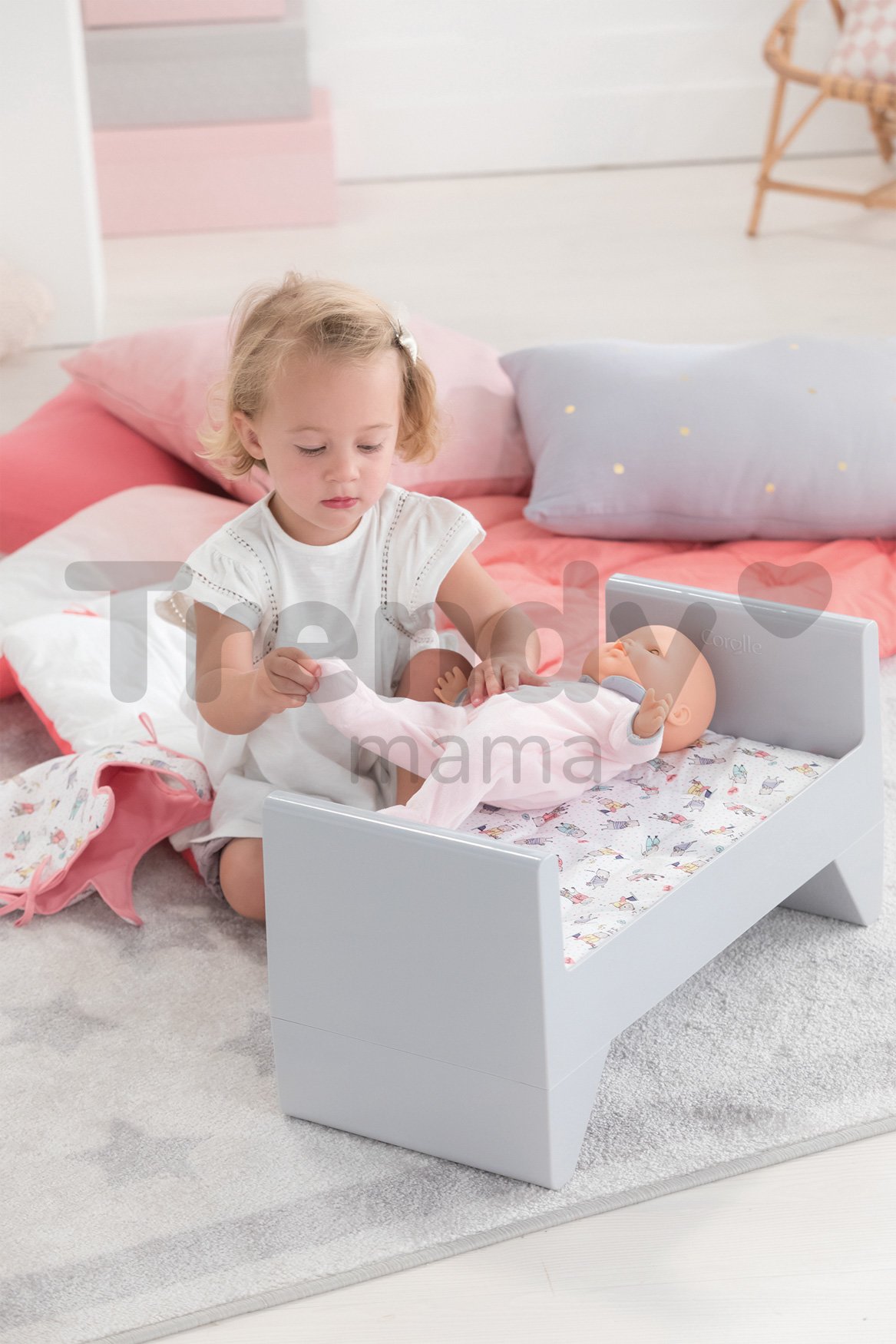 Je čas uložiť bábiku a popriať jej krásne sny! Postieľka Mon Premier Poupon Bébé z dielne francúzskej značky Corolle patrí k povinnej výbavičke každého dieťatka od 18 mesiacov, ktoré sa stará o bábiku Corolle. Nádherná sivá postieľka s vankúšom a paplónom je ako stvorená pre bábiku Corolle s veľkosťou 30-42 cm. Dizajnová postieľka s rozkošnými obliečkami je obojstranná, takže sa hravo prispôsobí veľkosti bábiky. Keď vaše dieťatko vyrastie a presunie sa do väčšej postieľky, môže to isté urobiť aj s bábikou. Na každú bábiku Corolle čakajú v postieľke krásne a ničím nerušené sny, ktoré jej prinesie nielen mäkučký matrac s nádhernou potlačou, ale aj starostlivosť vášho dieťatka.