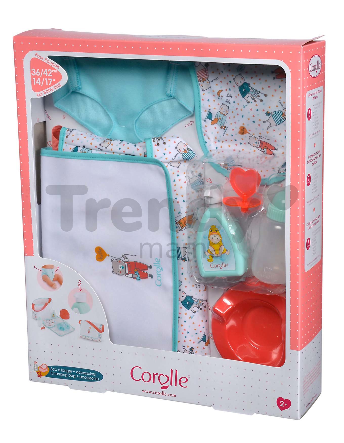 Prebaľovacia taška s podložkou 2v1 pre bábiku z dielne francúzskej značky Corolle premení každú hru s bábikou na neuveriteľný zážitok. Ako jediný eshop na trhu spestríme hru vášho dieťatka touto skvelou 7-dielnou súpravou na prebaľovanie, ktorá je určená pre bábiky s veľkosťou 36-42 cm. V prebaľovacej taške s rozkošným francúzskym dizajnom si detičky od 24 mesiacov nájdu 2 plienky, nočník, krém, podbradník, fľašu s mliekom a cumlík. Praktická prebaľovacia taška s úložným priestorom sa pritom vždy a všade jednoducho premení na prebaľovaciu podložku a starostlivosť o bábiku sa môže začať. Táto jedinečná súprava na prebaľovanie s nevyhnutnými doplnkami vášmu dieťatku jednoducho nesmie chýbať.