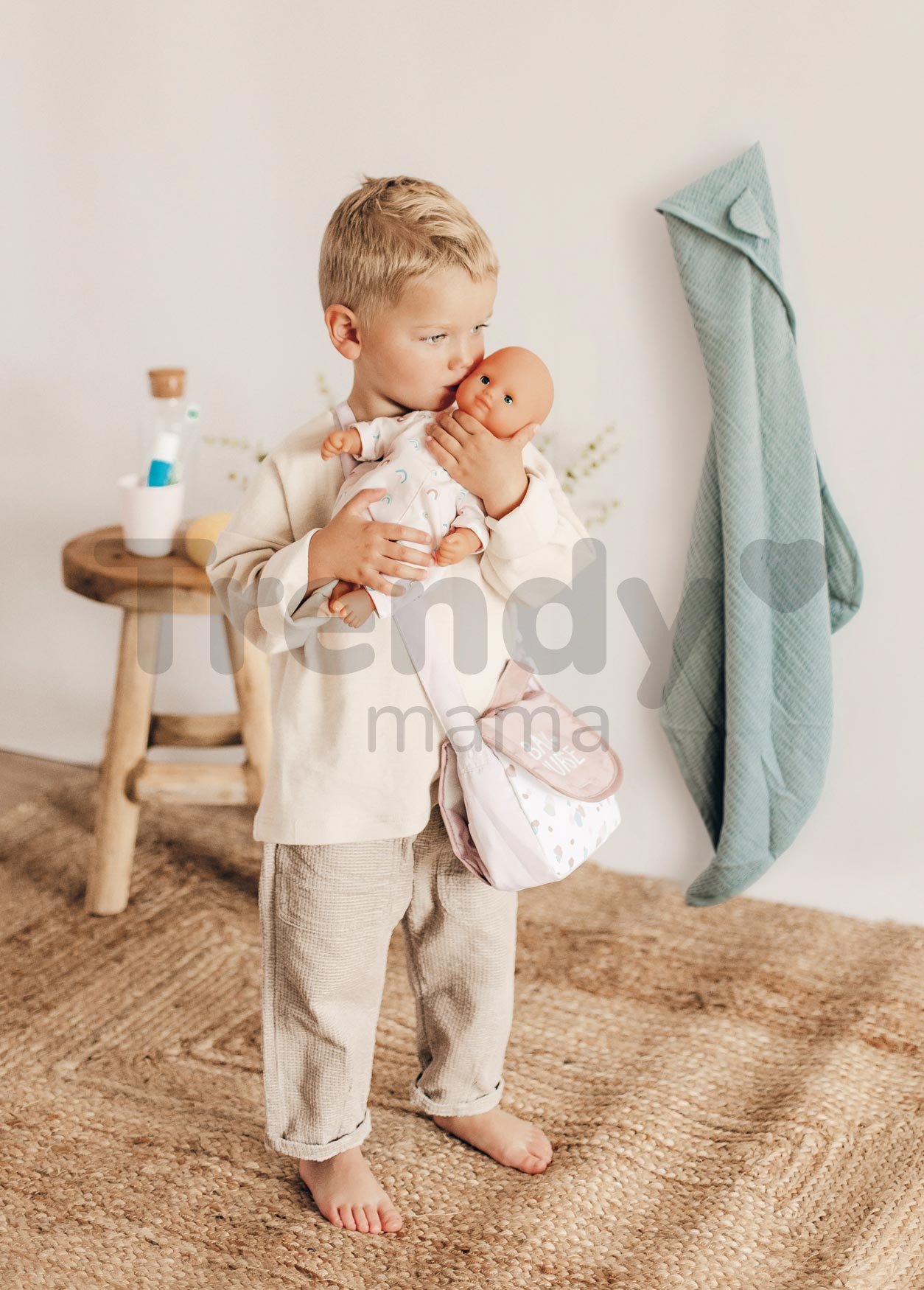 Praktická taška taška je vyrobená z kvalitného textilu, na bočnej strane je umiestnené vrecko na fľašku. Rozmery tašky sú 22*7*17 cm, dievčatkám sa s ňou ľahko manipuluje, je vybavená aj praktickou rukovätou, takže ju môžu nosiť ako klasickú tašku. S touto realistickou hračkou sa dievčatá dosýta zabavia, zahrajú sa s bábikami nielen doma, ale aj na návštevách so svojimi súrodencami a kamarátmi. Hra s detskou bábikou je pre deti dôležitá aj pri rozvíjaní komunikačných a jazykových schopností, získavajú pocit zodpovednosti a približujú sa svetu dospelých.