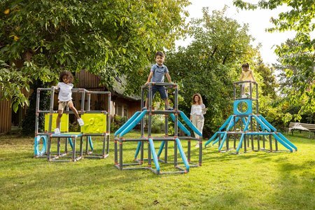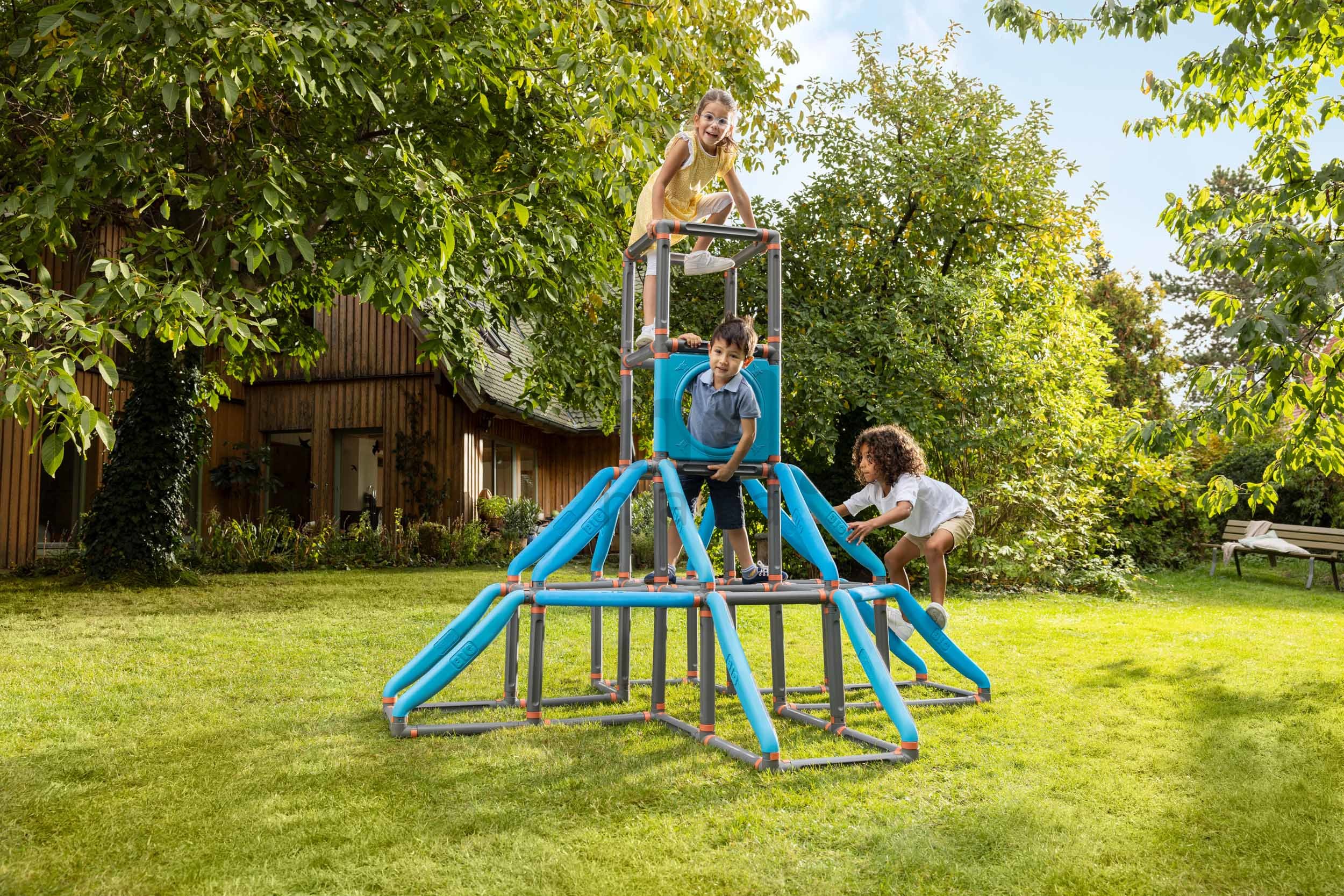 Konfigurovateľná preliezačka sa dá poskladať až v 7 rôznych variantoch, čím sa zaručí, že deti budú objavovať nové možnosti lezenia a tréningu na rôznych typoch konštrukcie. Súčasťou preliezačky sú aj uzemňovacie U-háky, ktorými sa konštrukcia fixuje do zeme a získa lepšiu stabilitu. Preliezačka v sivo-oranžovo-modrom prevedení ozdobí každý dvor a záhradu, jej celkové rozmery sú 185*185*230 cm. Maximálna nosnosť športovej preliezačky je 70 kg, jej montáž a prestavbu by mal vykonávať iba dospelý. Povrch preliezačky je chránený UV filtrom, vďaka čomu si zachová svoje krásne farby aj po dlhom čase.