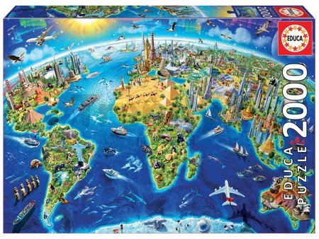 Puzzle pre deti aj dospelých s motívom glóbusu Zeme poteší všetkých milovníkov puzzle a poslúži ako skvelá učebná pomôca. Balenie puzzle obsahuje 2000 dielikov a jeho skladanie dá zabrať aj náročnejším skladateľom puzzle. Puzzle pre deti i dospelých po poskladaní tvoria jeden obrázok. Puzzle sú vyrobené z kvalitného materiálu. Spĺňajú bezpečnostné štandardy - sú bezpečné pre deti i dospelých. Tieto puzzle zachytávajú našu Zem a znázorňujú jednotlivé krajiny a najvýznamnejšie objekty, ktoré ich reprezentujú. Po poskladaní na obrázku nesmú chýbať pyramídy v Gize, slávny Golden Gate v San Franciscu, rímske Koloseum, parížska Eiffelova veža, londýnsky Big Ben a London Eye, ale aj čínske pandy, austrálske koaly a africké zvieratká.