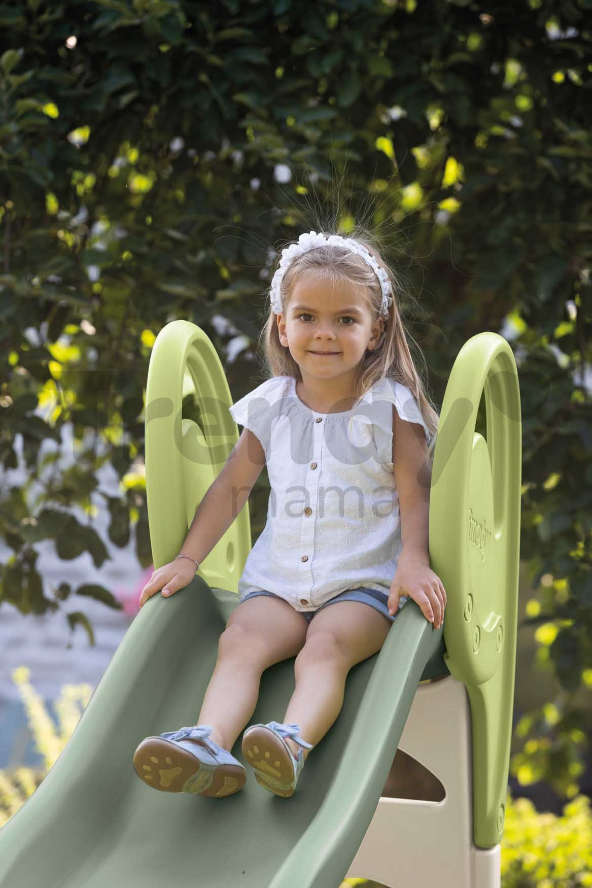 Šmykľavka je vybavená pohodlnou ergonomickou plochou na šmýkanie, ktorú deti ocenia pri každodennej hre. Povrch šmykľavky je vybavený UV filtrom, ktorý chráni farby pred vyblednutím, vďaka čomu vyzerá šmykľavka ako nová aj po dlhom používaní. Je vyhotovená v jemných prírodných farbách, ktoré sa dokonale hodia na každý dvor alebo záhradu a pomáhajú v deťoch rozvíjať fantáziu a predstavivosť. Šmykľavka je vyrobená ekologickým spôsobom, pri výrobe sa použilo až 80% recyklovaného materiálu, vďaka čomu značka Smoby výrazne prispela k ochrane životného prostredia.