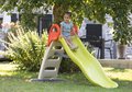 Šmykľavka je vybavená pohodlnou ergonomickou plochou na šmýkanie, ktorú deti ocenia pri každodennej zábave. Povrch šmykľavky je vybavený anti UV filtrom, ktorý chráni farby pred vyblednutím, vďaka čomu vyzerá šmykľavka ako nová aj po dlhom používaní. Je vyhotovená v krásnych sviežich farbách, ktoré sa dokonale hodia na každý dvor alebo záhradu a pomáhajú v deťoch rozvíjať fantáziu a predstavivosť. Šmykľavka pre deti je využiteľná na jar, v lete, či na jeseň a stane sa obľúbeným miestom na hranie pre vaše deti. Jej celkové rozmery sú 217*88*119 cm.