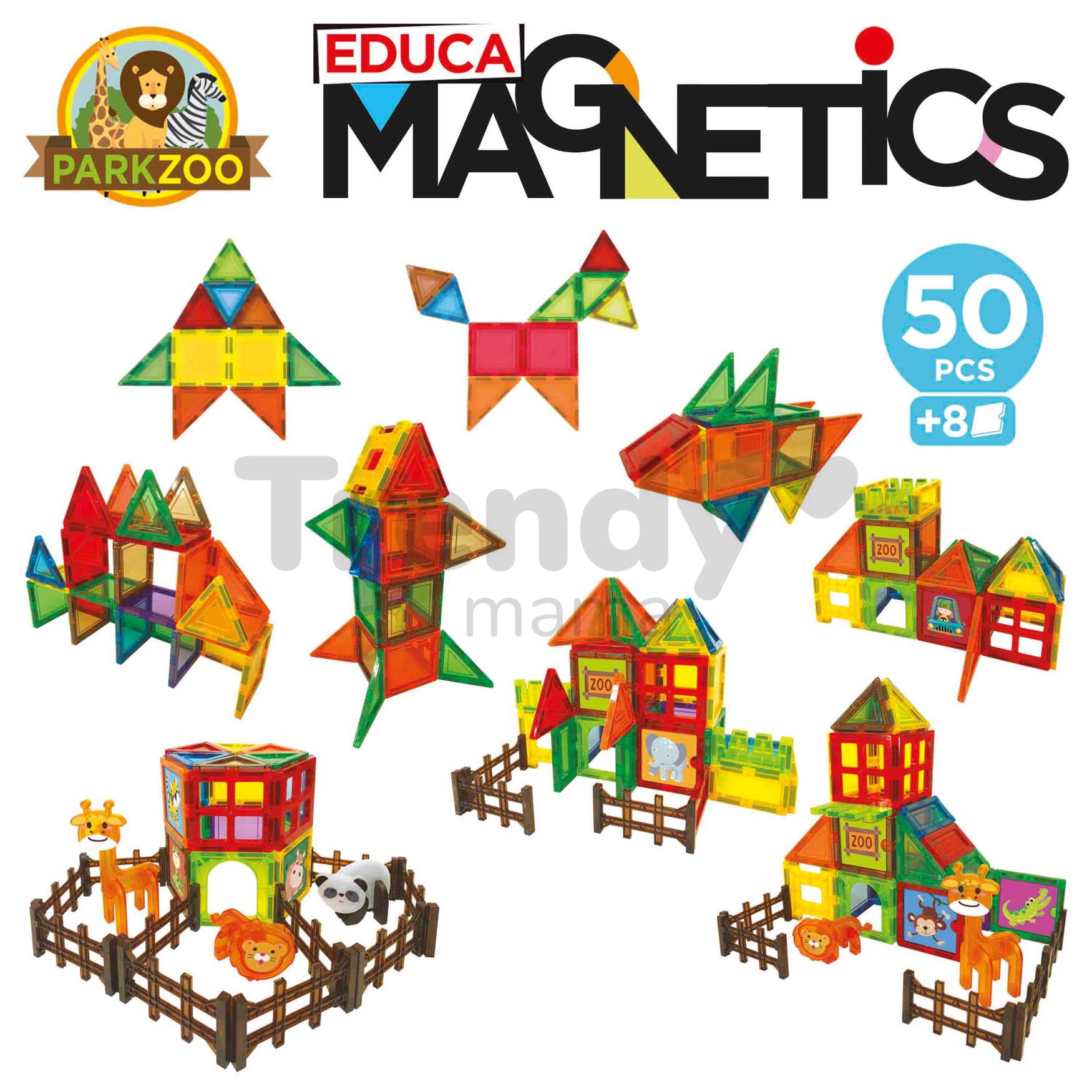 Originálne stavebnice s magnetmi od španielskeho výrobcu Educa. Magnetická stavebnica s motívom Zoo parku poteší chlapcov a dievčatá 50 dielikmi so 4 figúrkami zvieratiek.