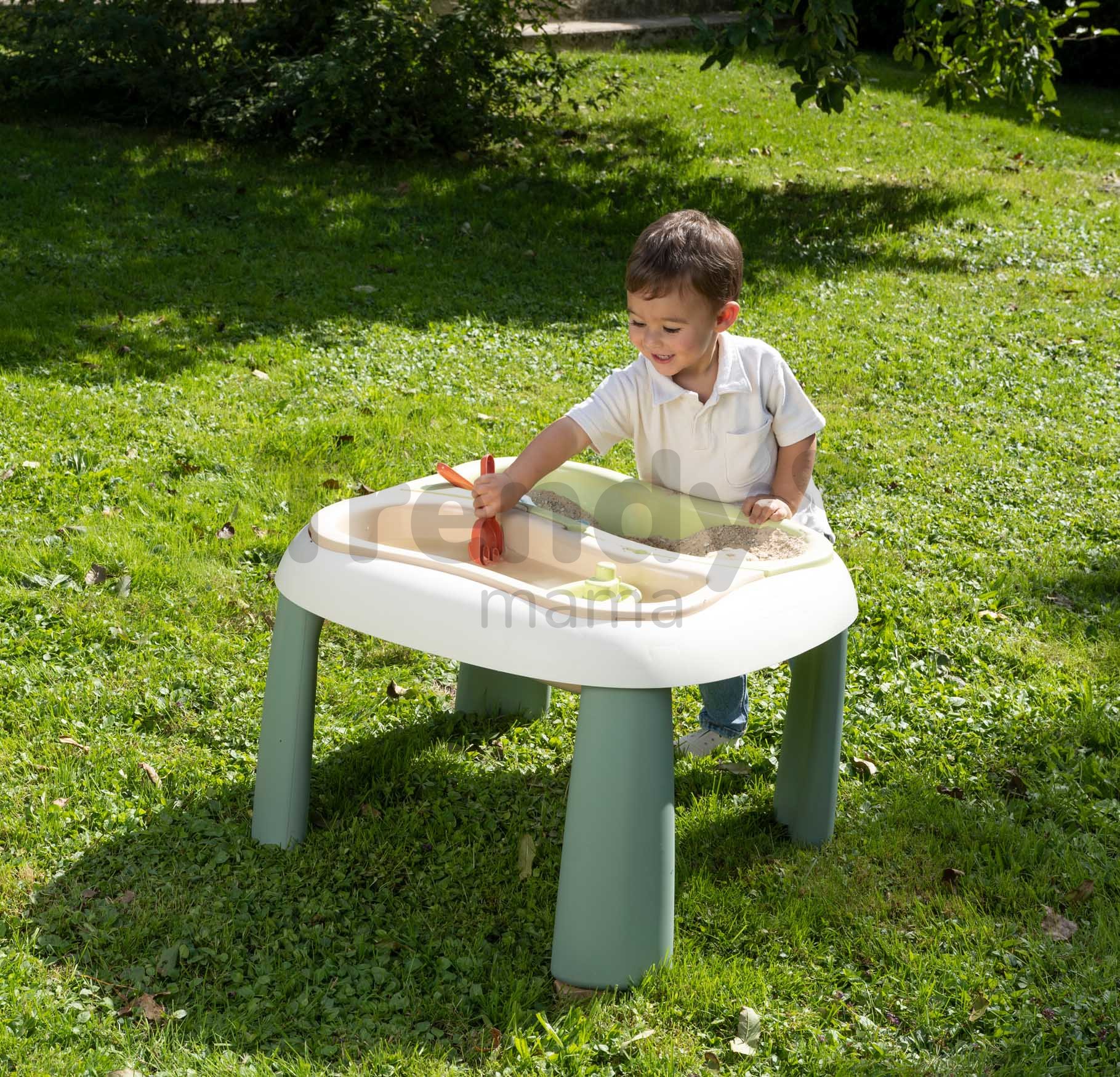 Detský stolík na hranie je špecifický svojou multifunkčnosťou. Po zložení vrchného krytu môžu rodičia dať do prázdnych komôr vodu alebo piesok a zábava s formičkami, loďkou a inými hračkami môže začať. Po prikrytí vrchným krytom môžu vaše ratolesti na stolíku kresliť, obedovať alebo skladať stavebnice a hrať spoločenské hry. Stolík je vybavený aj otvorom pre upevnenie slnečníka (nie je súčasťou balenia), takže sa deti počas horúcich letných dní môžu hrať v príjemnom tieni.