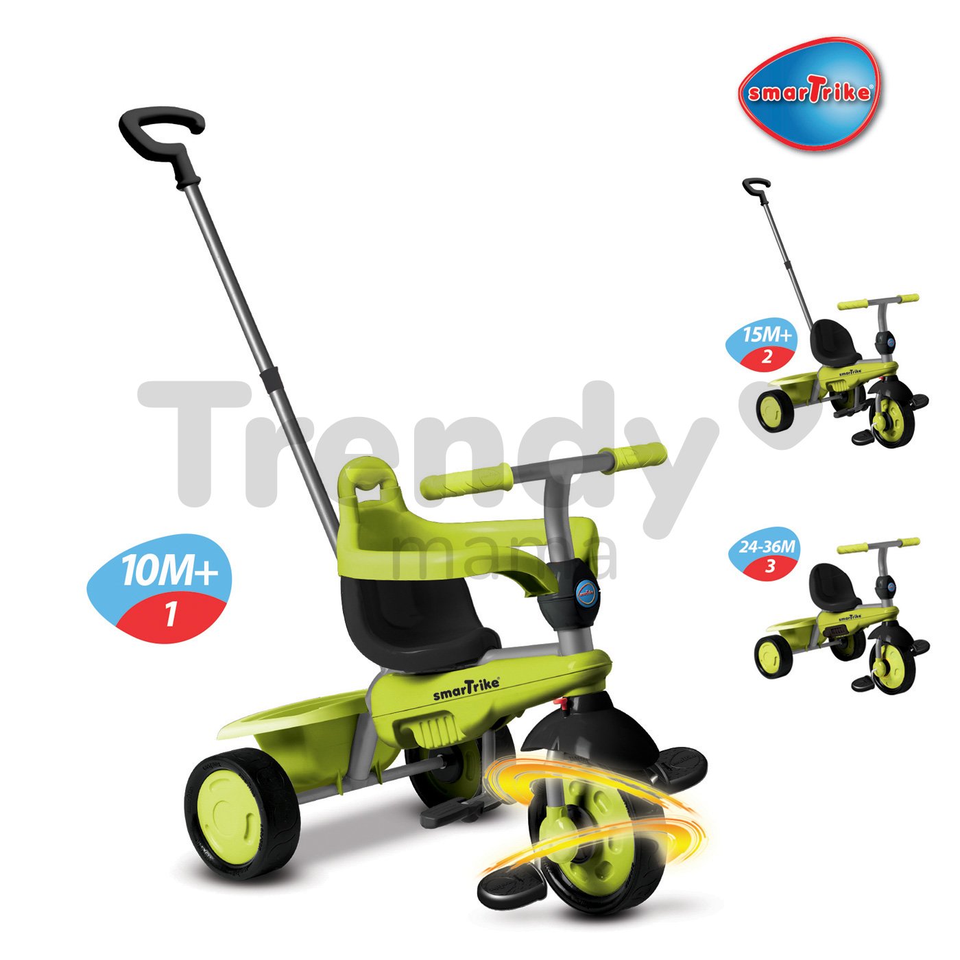 În etapa a doua, de la vârsta de 24 luni tricicleta va deveni un accesoriu de antrenare, în acest timp copilașul învață pedalarea corectă. Începând de la vârsta de 30 de luni, ghidonul parental se poate demonta și copilașul poate să pedaleze singur. Tricicleta minunată pentru copii smarTrike Breeze Touch Steering strălucește în culorile verde-negru, care este potrivită atât băieților, cât și fetițelor. Alegeți tricicleta smarTrike pentru copii, deoarece este lider pe, piață în producție și în domeniul inovațiilor. Marca de tricicletă smarTrike este cea mai bine vândută și cea mai apreciată marcă de tricicletă pentru copii. Timp de decenii este prezent pe, piață și a fost primul care a introdus inovația ghidonului parental reglabil în înălțime.