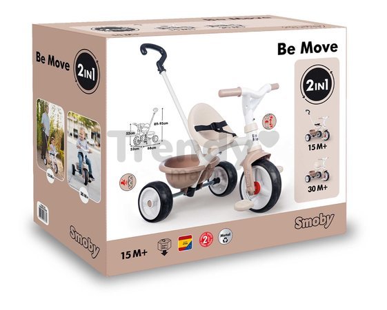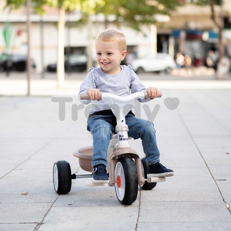 Jedinečná béžová trojkolka Be Move Tricycle od francúzskej značky Smoby predstavuje dokonalý spôsob, akým rozhýbať deti od 15 mesiacov. Na originálnej trojkolke s celokovovým rámom budú deti objavovať okolitý svet a zároveň si budú užívať príjemnú, bezpečnú jazdu. Odolná konštrukcia trojkolky je zárukou, že vydrží vášmu dieťaťu po dlhé roky. Tiché a odolné EVA kolieska sú vyrobené zo špeciálneho materiálu a vyznačujú sa skvelými jazdnými vlastnosťami.V kolieskach sa snúbia výhody tichých gumených koliesok a odolného plastu, takže jazda na trojkolke bude tichá a bezpečná. Trojkolka dokáže rásť s dieťaťom a prispôsobovať sa jeho potrebám.
