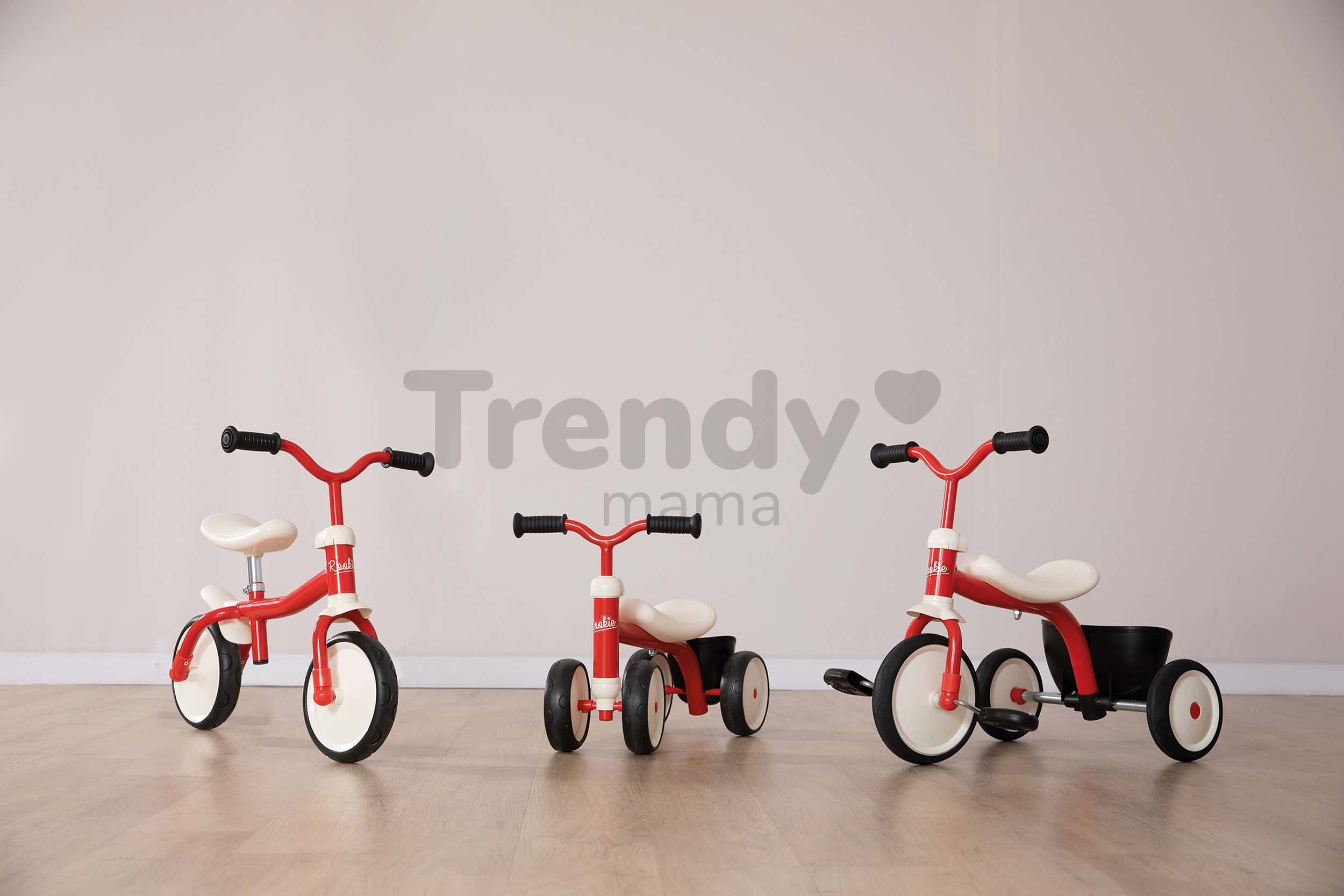 Trojkolka a odrážadlo Retro Rookie Trike od francúzskeho Smoby je ultraľahká trojkolka vhodná pre chlapcov aj dievčatá už od 24 mesiacov. Najmenšie deti ju môžu využívať aj ako odrážadlo a keď sú väčšie, učia sa pedálovať a jazdiť ako na klasickej trojkolke. Je vybavená špičkovou kovovou konštrukciou, ktorá sa vyznačuje vysokou kvalitou a odolnosťou, ergonomicky tvarované sedadlo ponúkne deťom pohodlie aj pri dlhšej trase. Prvotriedne EVA kolieska sú vyrobené zo špeciálneho materiálu, kombinujúceho výhody tichých gumených koliesok a odolného plastu. Dieťa si tak môže užívať hladkú a tichú jazdu v exteriéri aj interiéri.