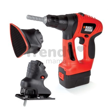 Setul de unelte electrice Smoby Black&Decker Quatro este un joc elaborat şi practic. Este ideal pentru băieţii care adoră să meşterească şi să lucreze cu unelte. Unealta conţine 3 accesorii care fac ca aceasta să devină un dispozitiv cu funcţii multiple şi îl fac pe copilaşul dvs. un mic meseriaş adevărat. La un moment dat este o maşină de găurit, apoi un şlefuitor şi în final un fierăstrău manual. Toate aceştia într-un singur accesoriu cu capete înlocuibile. Având în vedere că este electrică, funcţionează cu baterie. În timpul jocului emite sunete sonore, exact ca şi o unealtă adevărată. Este un accesoriu perfect pentru băncile complexe de lcuru de la compania Smoby.