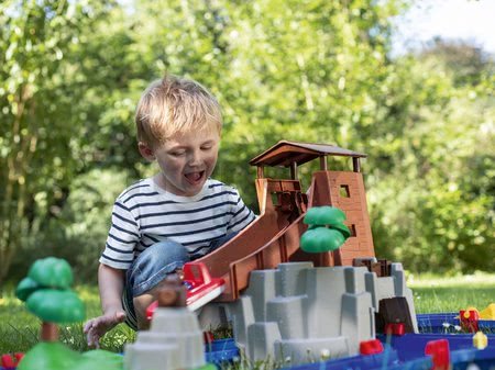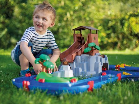 Vodná dráha Adventure Land od AquaPlay je vynikajúca vodná hračka pre všetkých chlapcov a dievčatá už od 3 rokov. Moderná vodná dráha ponúkne deťom 2 loďky s figúrkami medvedíka Bo a krokodíla Swena, ktorí sú odvážnymi námorníkmi. Čaká na nich horské jazero s vodopádom, ktorý deti spúšťajú zdvihnutím stavidla, a v najvyššej časti horskej veže sa nachádza vodná šmykľavka, po ktorej sa loďky šmyknú späť do vodného kanála. Prepravu lodiek k šmykľavke zabezpečuje praktický lodný výťah. S vodným mlynom má dieťa možnosť poháňať prúd vody a ovládať tak rýchlosť pohybu lodiek. Odvážni námorníci sa budú plaviť aj cez tajomnú jaskyňu a okolo nebezpečného ostrova, pričom si budú musieť dávať pozor na funkčné vodné delo, pod ktorým sa skrýva pirátsky úkryt.