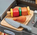 V bohatej súprave doplnkov objavia chlapci a dievčatá všetko potrebné pri hre na šéfkuchárov: pizzu s lopatkou, kuchynskú dosku, napichovaciu paličku s prísadami, nožík, obracačku, grilovacie kliešte, kuracie stehná, párku, patizón, kečup, soľničku a fľašky s olejom. Deti sa s replikami rôznych potravín naučia grilovať mäsko, piecť pizzu, dochucovať jednotlivé jedlá a obsluhovať svojich zákazníkov. Kuchynka stojí na 4 stabilných nohách, dá sa ľahko prenášať, jej rozmery sú 49*32*55 cm. Realistický vzhľad kuchynky s prepracovanými detailmi zaujme deti na prvý pohľad, je vyrobená z kvalitných plastov so zaoblenými hranami.